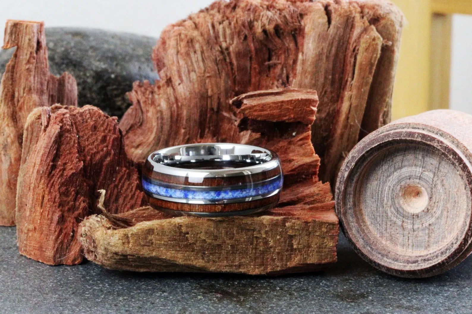 Blue Spinel Your own Wood Silver Gray Tungsten Carbide Rings - Custom – TungstenRingStudio