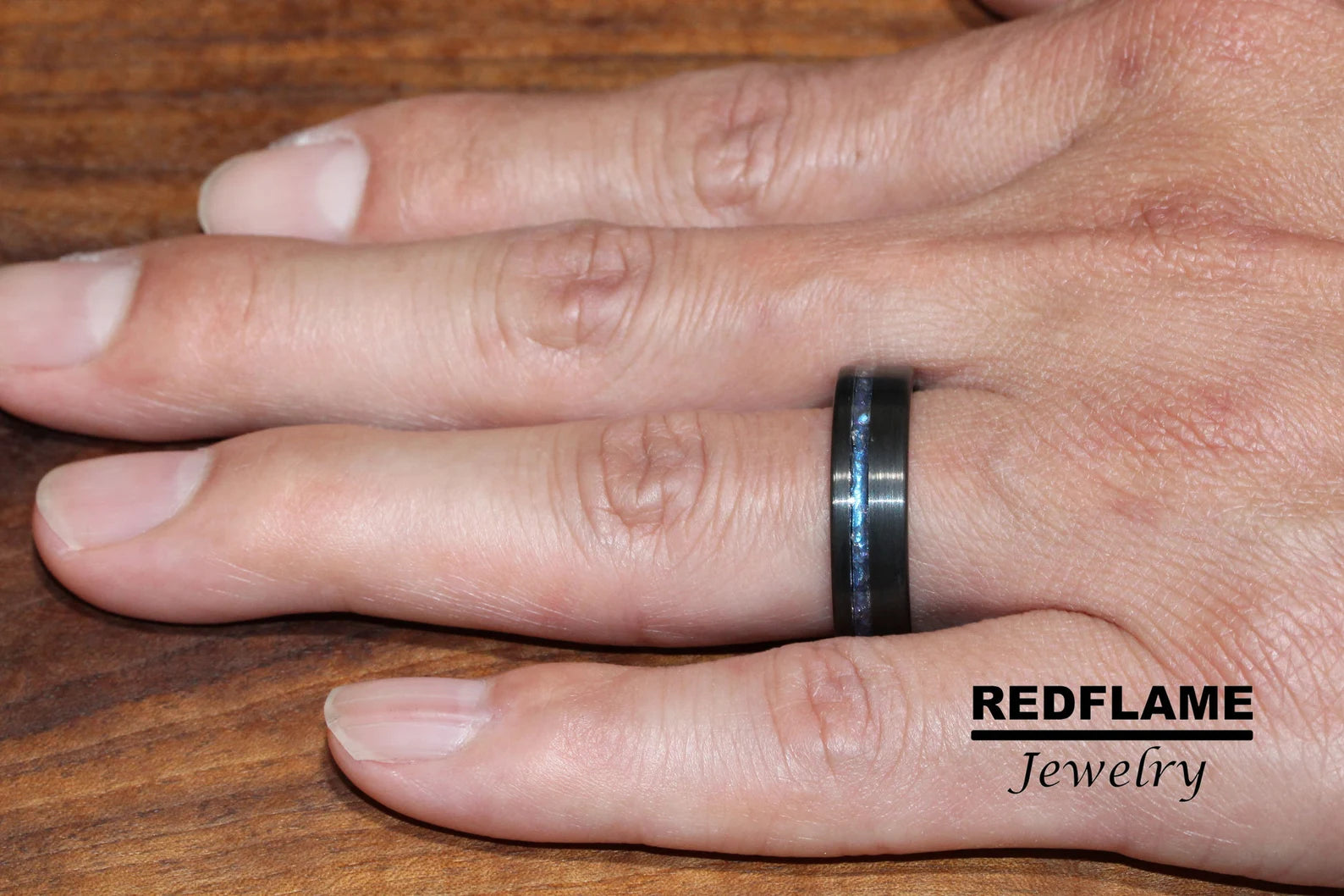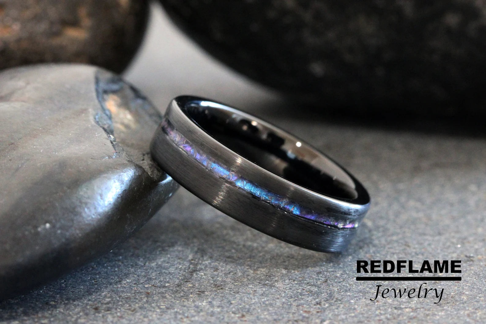 Brushed Alexandrite Crushed Wedding Ring Black Changing Color Black Tungsten Wedding Mens Ring Custom Order 6mm 8mm Band