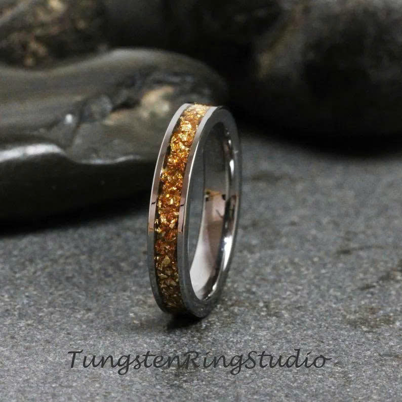 Tungsten Carbide is a extremely strong, very scratch resistant, durable, shines for the life of the ring. They are stronger over 10 times than gold. When compared to other metals such as titanium and steel, tungsten is stronger too. It will not rust, corrode or change color. A perfect choice when looking for a wedding band, gift or even a personal accessory.
