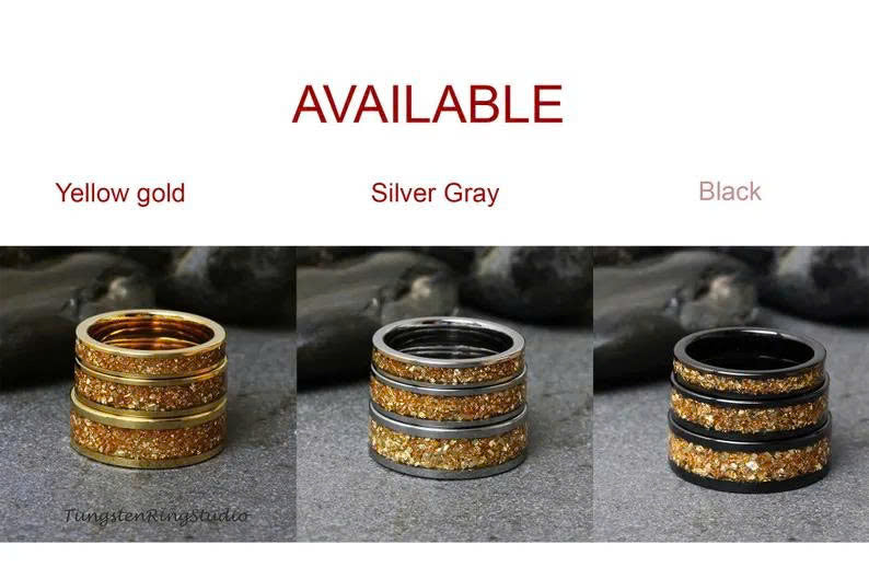 Mens Citrine Yellow Glass Wedding Silver Gray Tungsten Carbide Ring 4 6 8mm Women Mens Ring Band Yellow Gold Anniversary Band Anniversary
