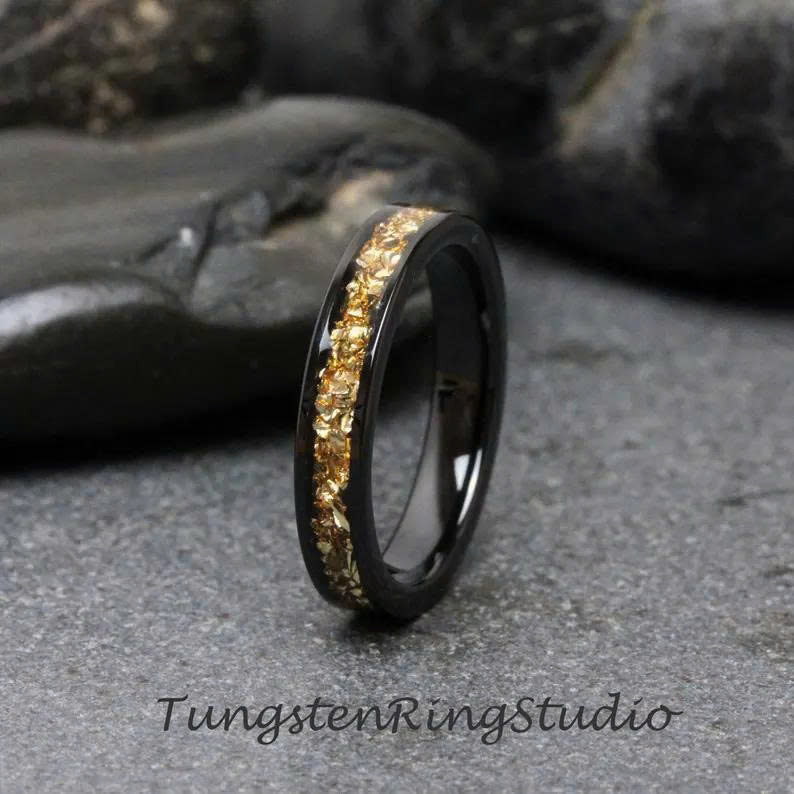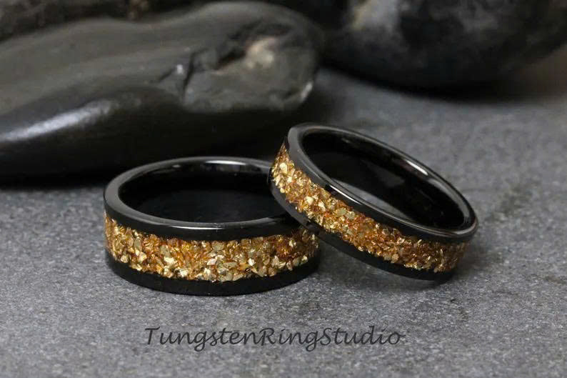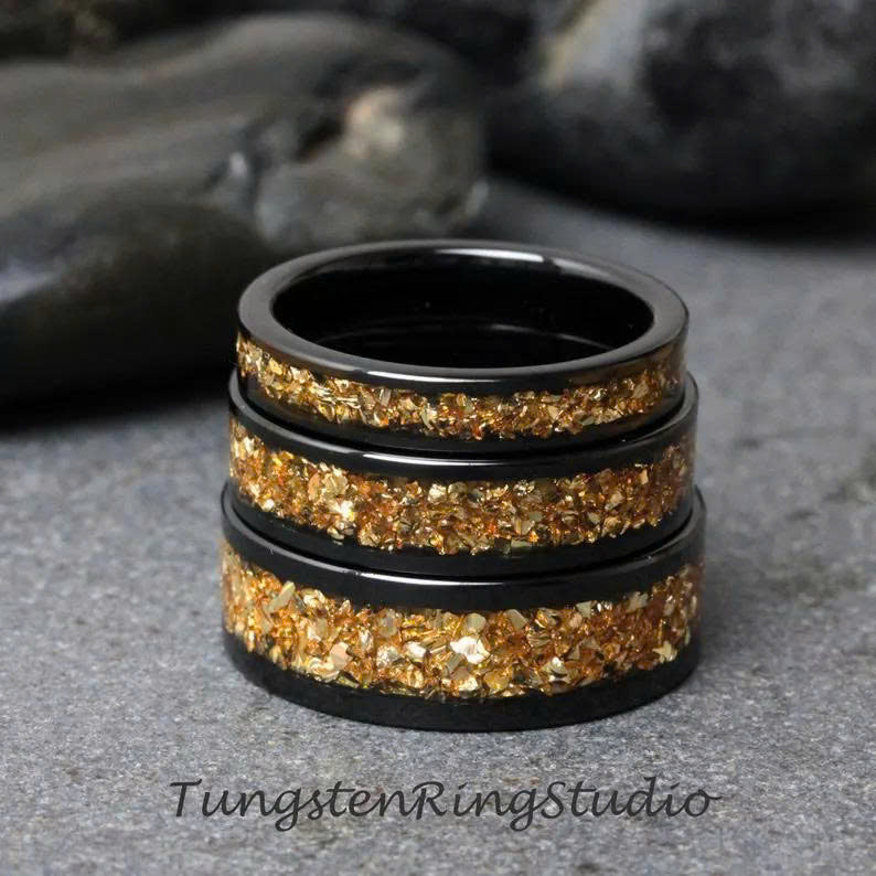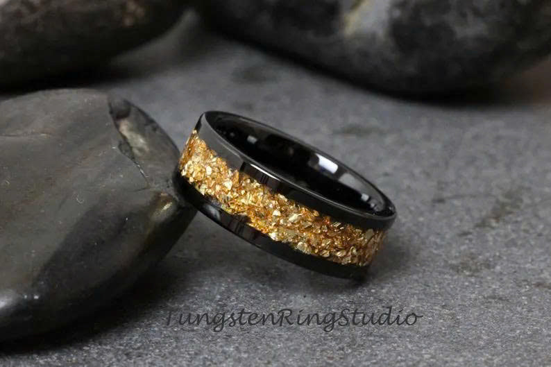 8mm Citrine Yellow Glass Black Tungsten Carbide Ring – TungstenRingStudio