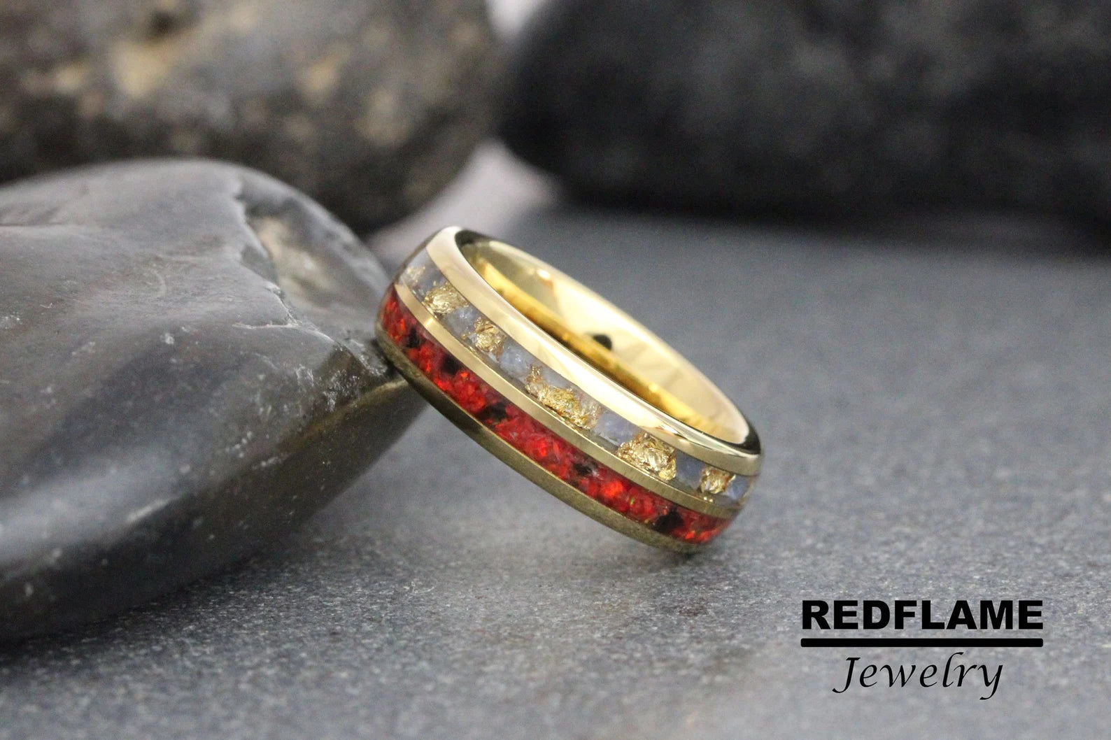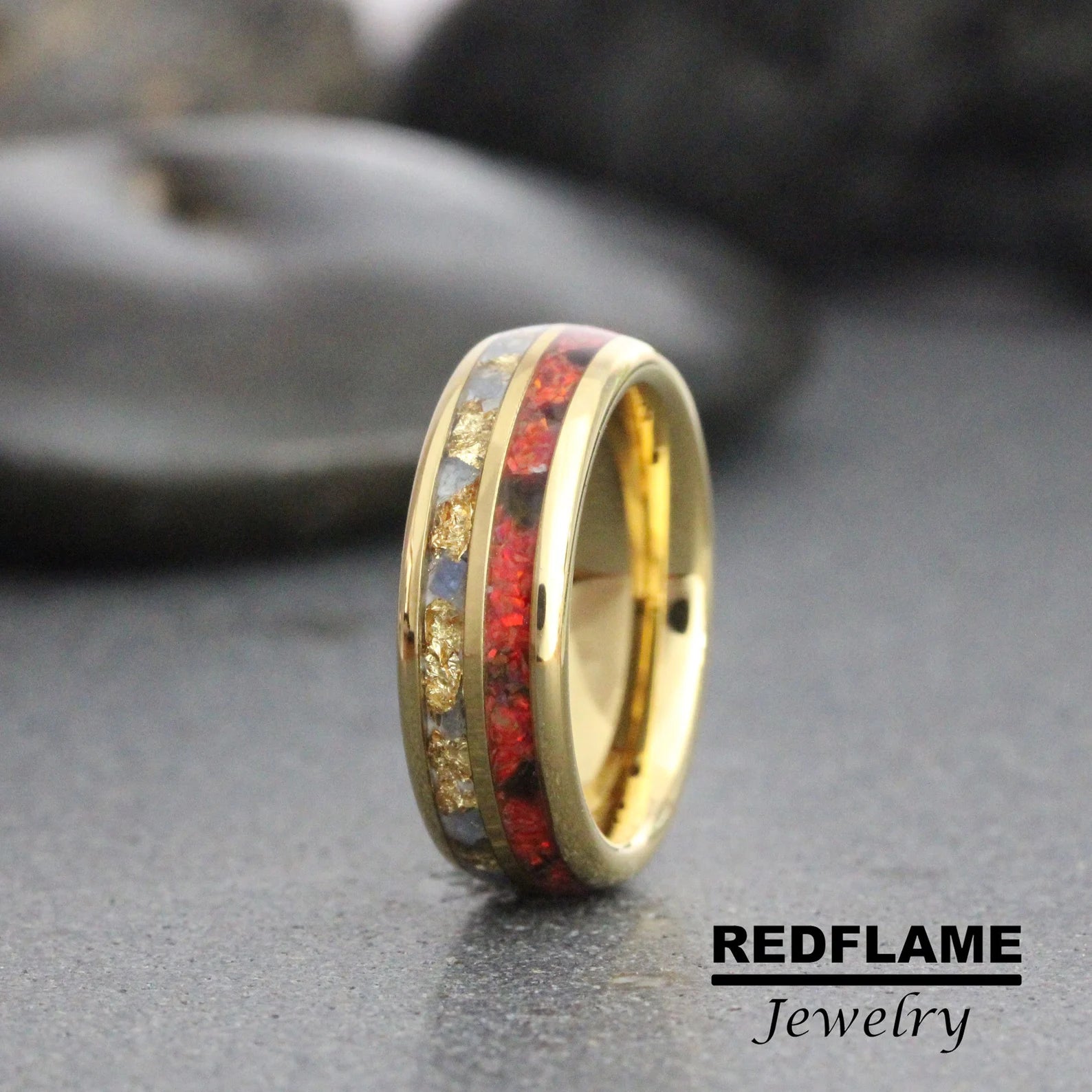 Combo Red Opal, Black Obsidian, Blue Sapphire Tungsten Ring- Custom Or – TungstenRingStudio