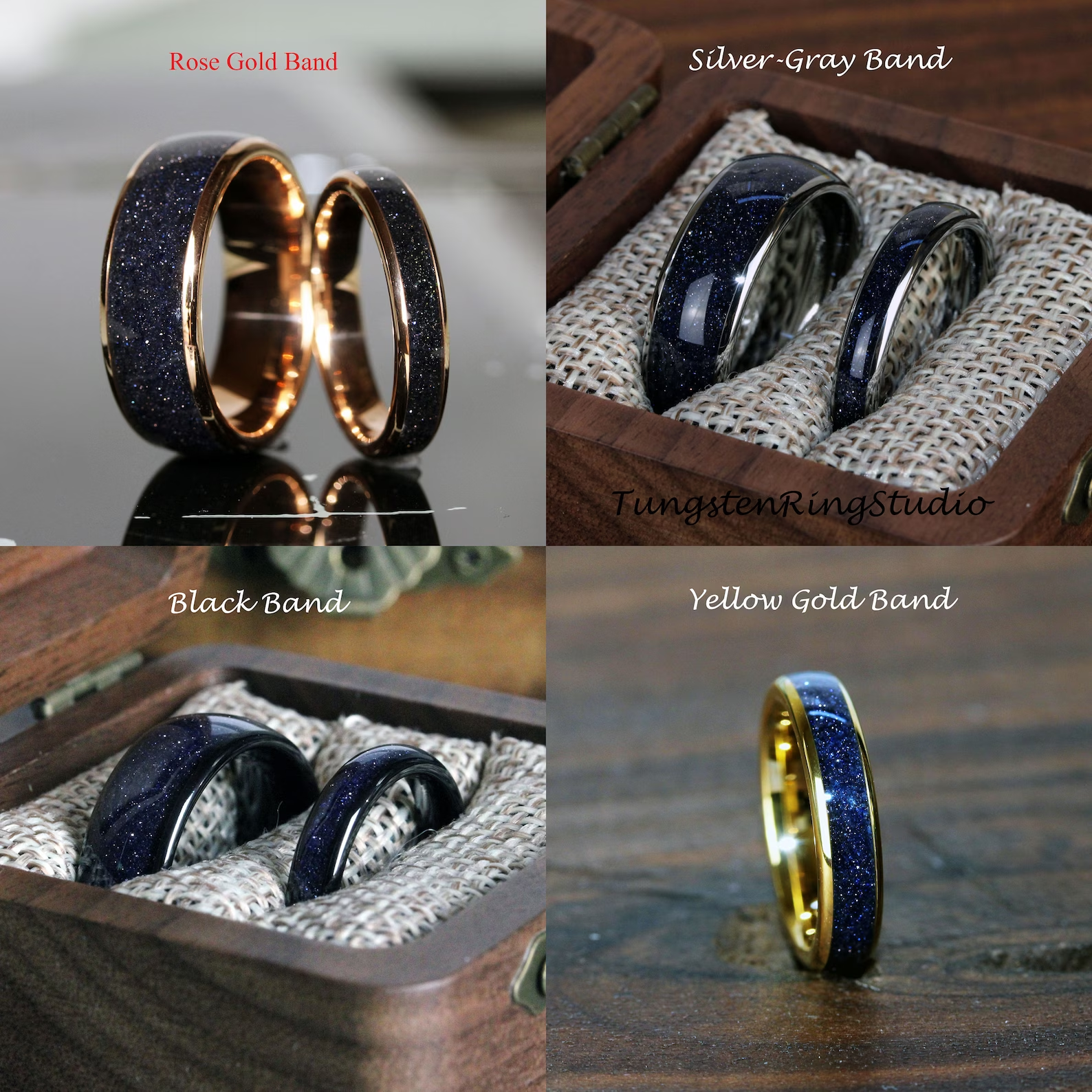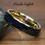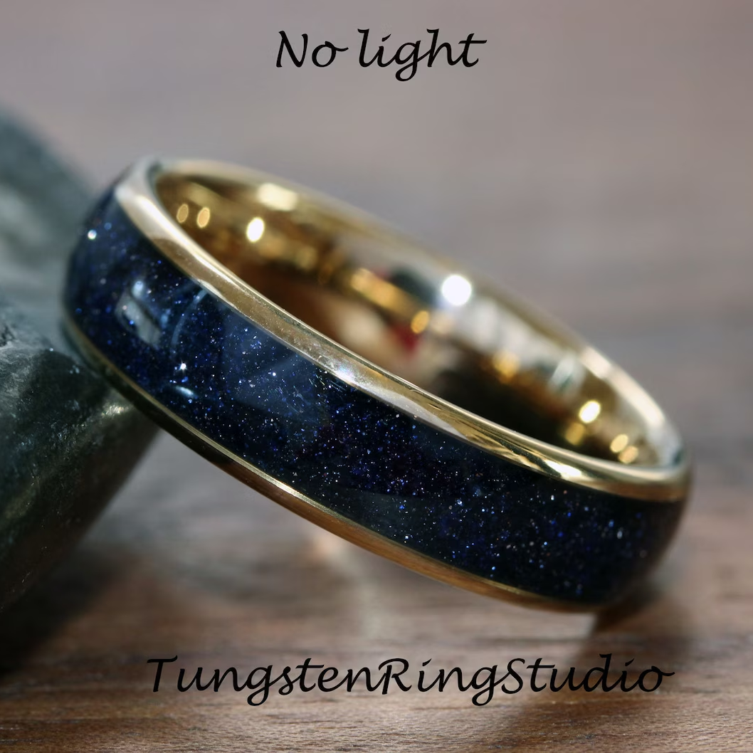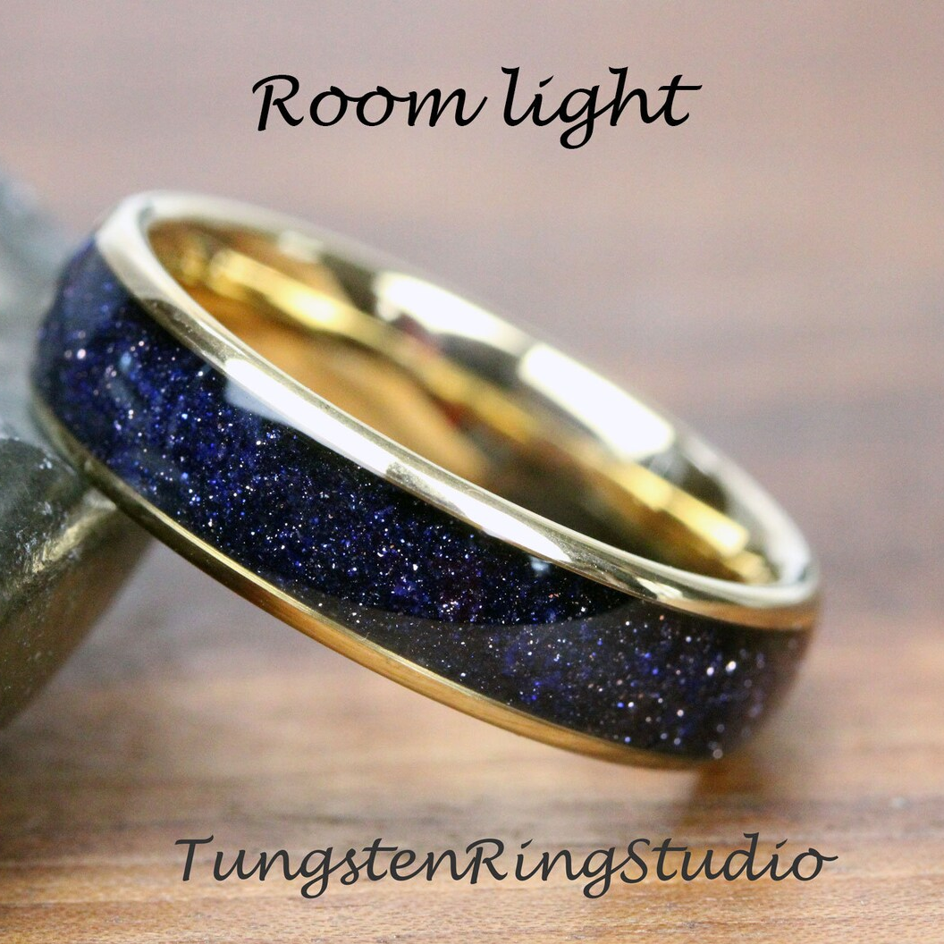 Nebula Blue Sandstone Yellow Gold Tungsten Ring – TungstenRingStudio