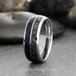 Dual inlay ring with real meteorite shaving and the night sky inspired blue sandstones