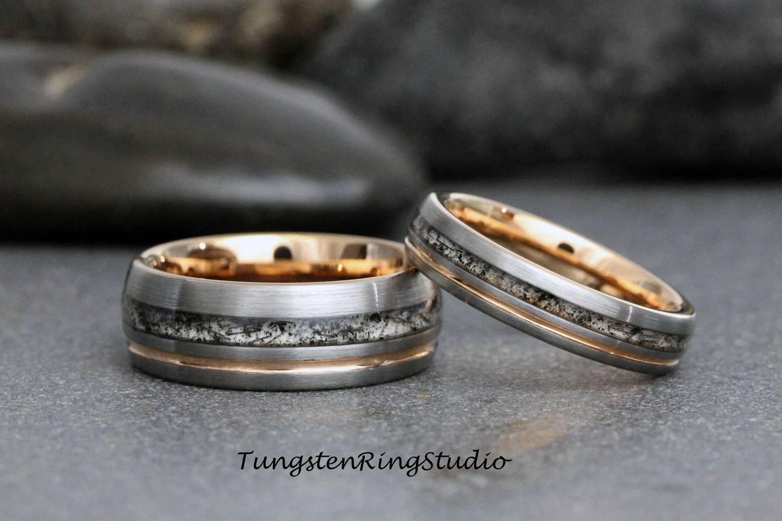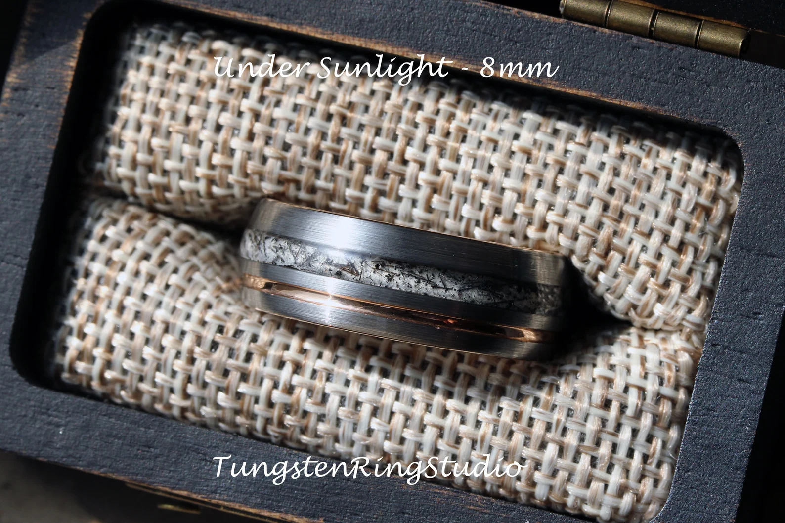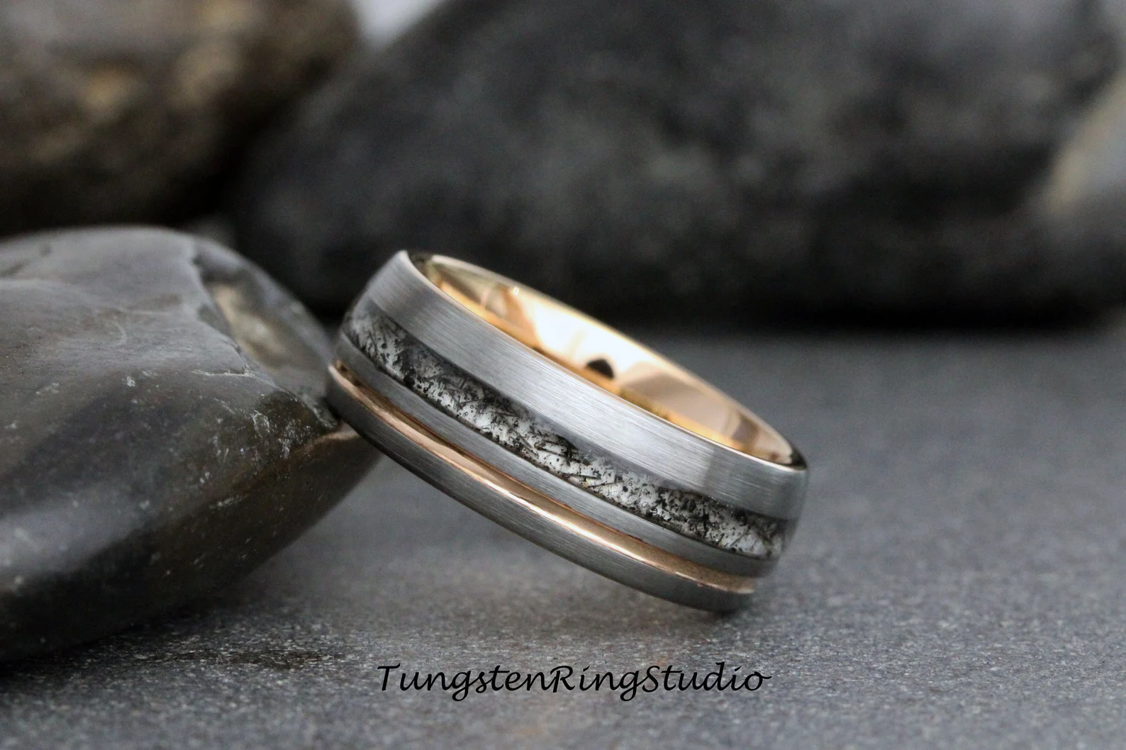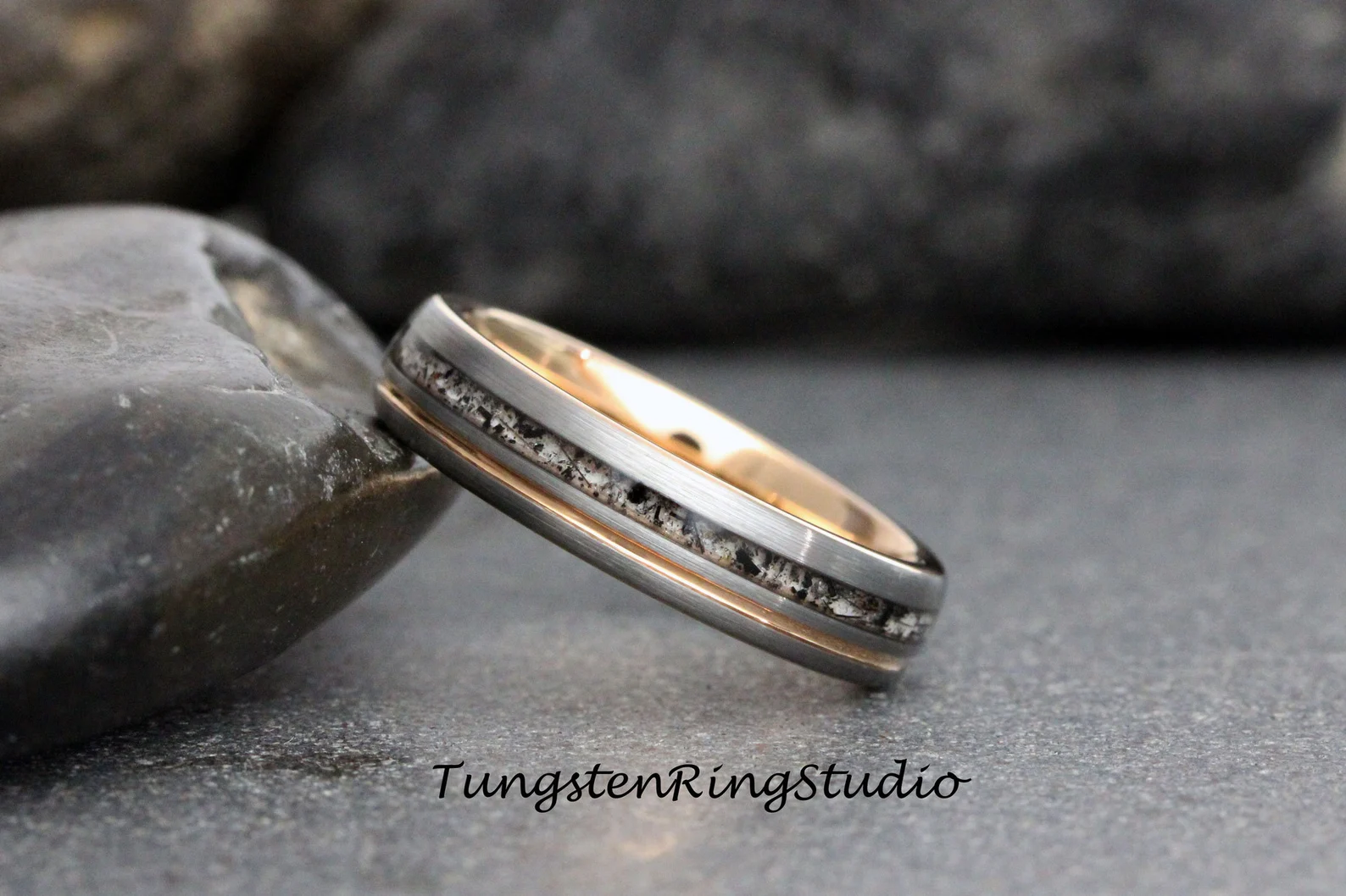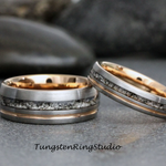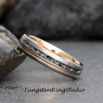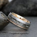 Black Rutilated Quartz Rose Gold Accent Tungsten Ring 5 mm 8 mm – TungstenRingStudio