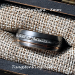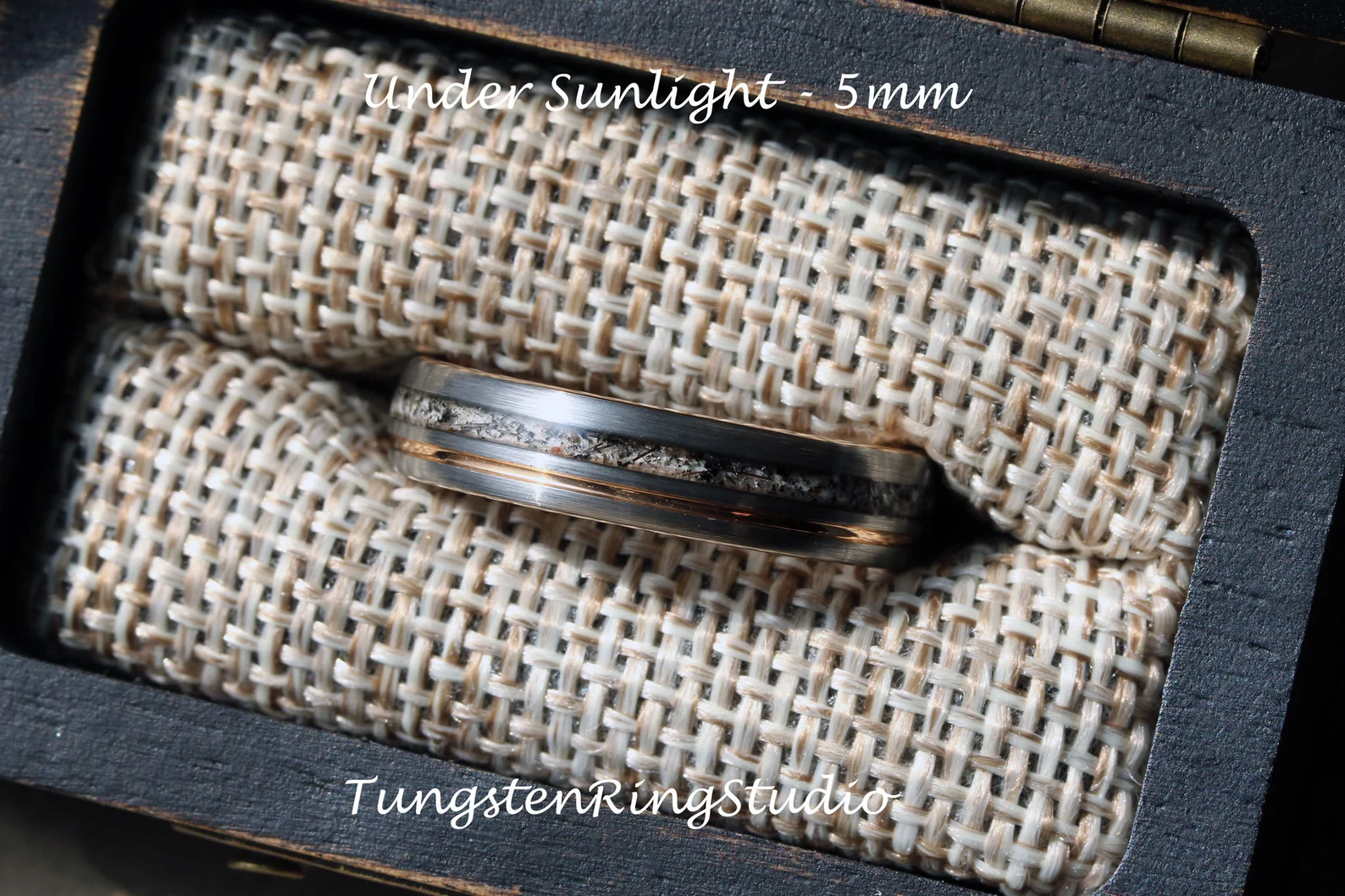 5mm Black Rutilated Quartz Ring Rose Gold Accent 5mm Silver Gray Tungsten Wedding Ring Rutilated Wedding Mens Ring Men & Women Brushed Dome