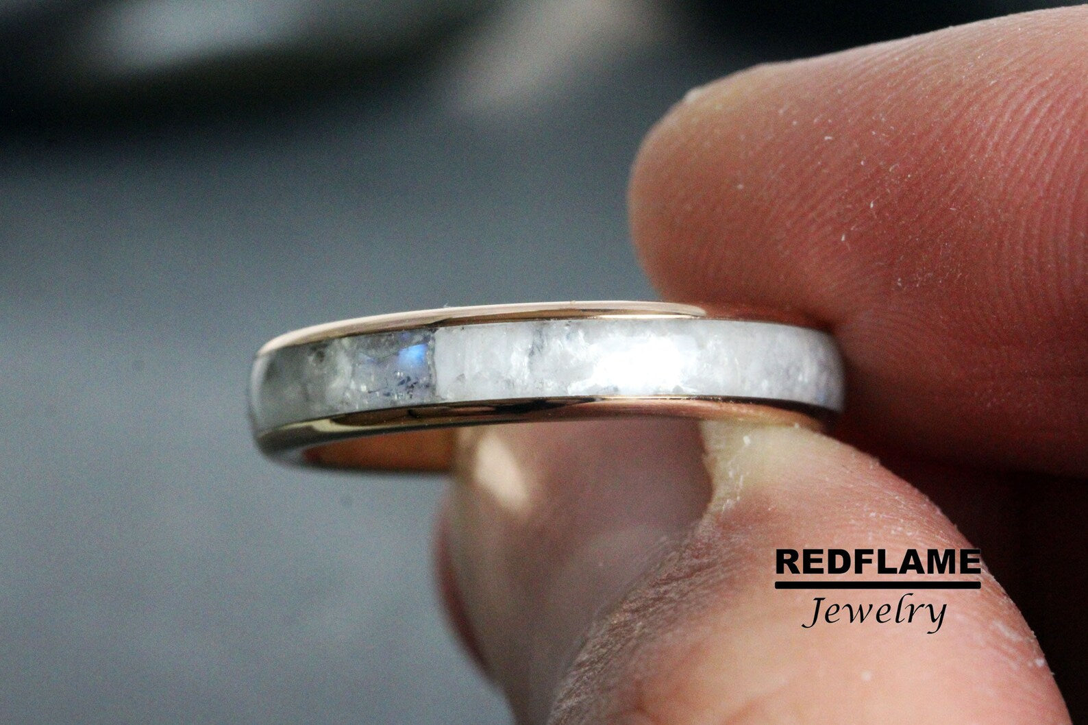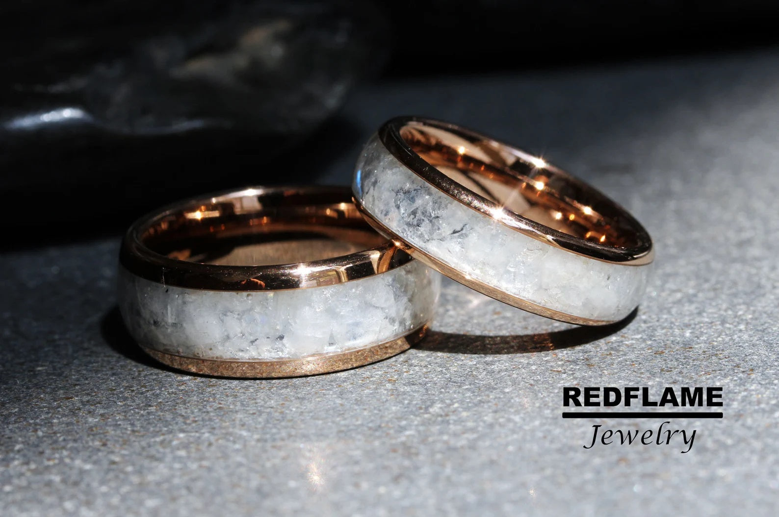Rainbow Moonstone Matching Tungsten Set- Custom Order – TungstenRingStudio