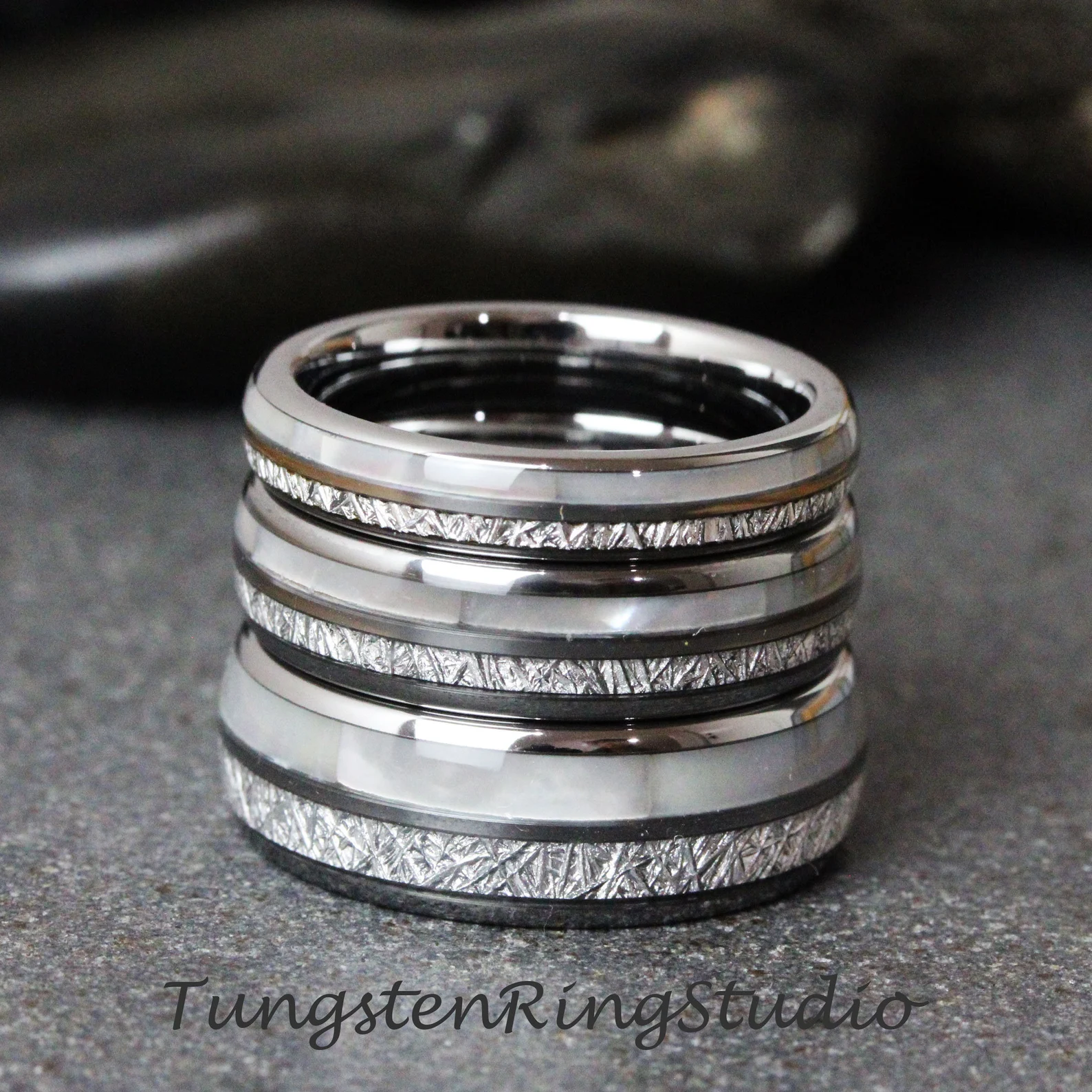 4mm Mother of Pearl Meteorite Tungsten Ring – TungstenRingStudio