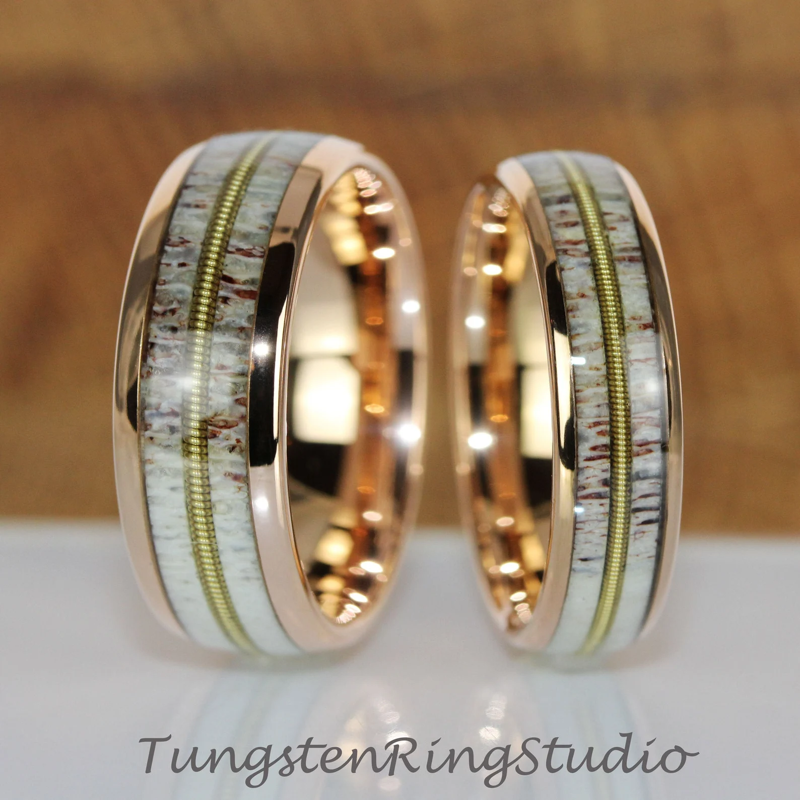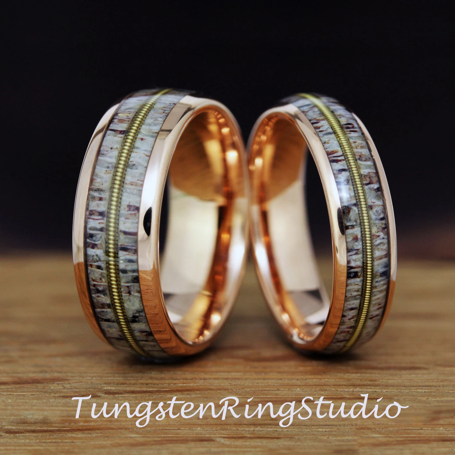 Deer Antler Guitar String Rose Gold Tungsten Ring 6mm 8mm – TungstenRingStudio