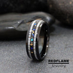 Combo Triple Inlay: Gibeon Meteorite Shaving, and Guitar string and Blue stone Tungsten Wedding Ring