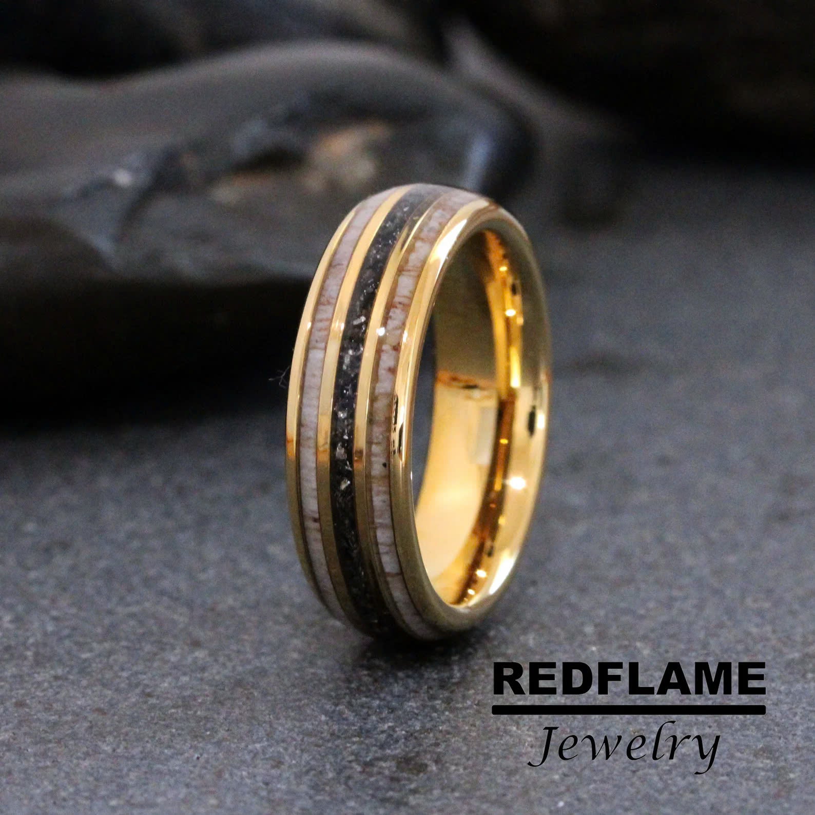 Deer Antler Meteorite Yellow Gold Tungsten Carbide Ring- Custom Order – TungstenRingStudio