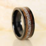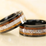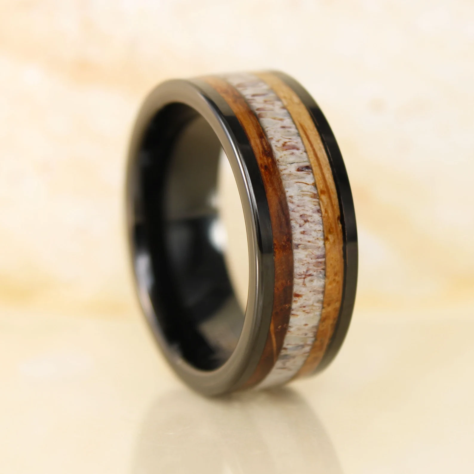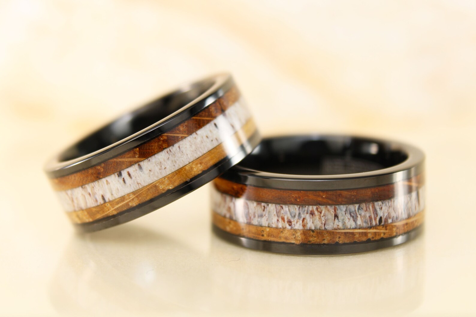 Deer Antler Whiskey Barrel Oak Wood Black Tungsten Ring – TungstenRingStudio