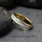 Diamond Dust Ring Yellow Gold Polish Tungsten Carbide Ring – TungstenRingStudio