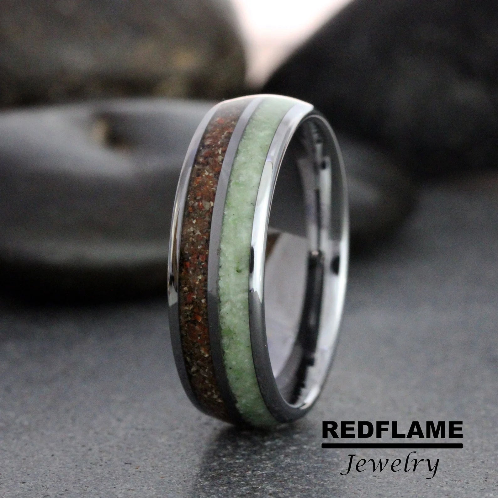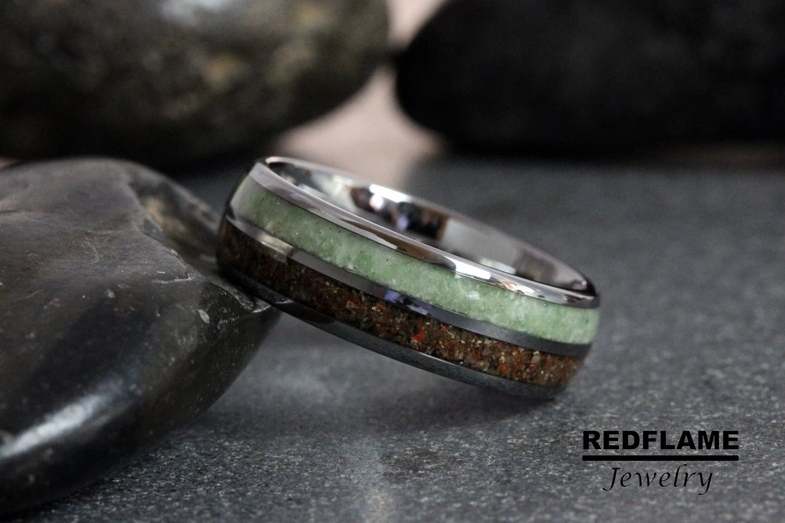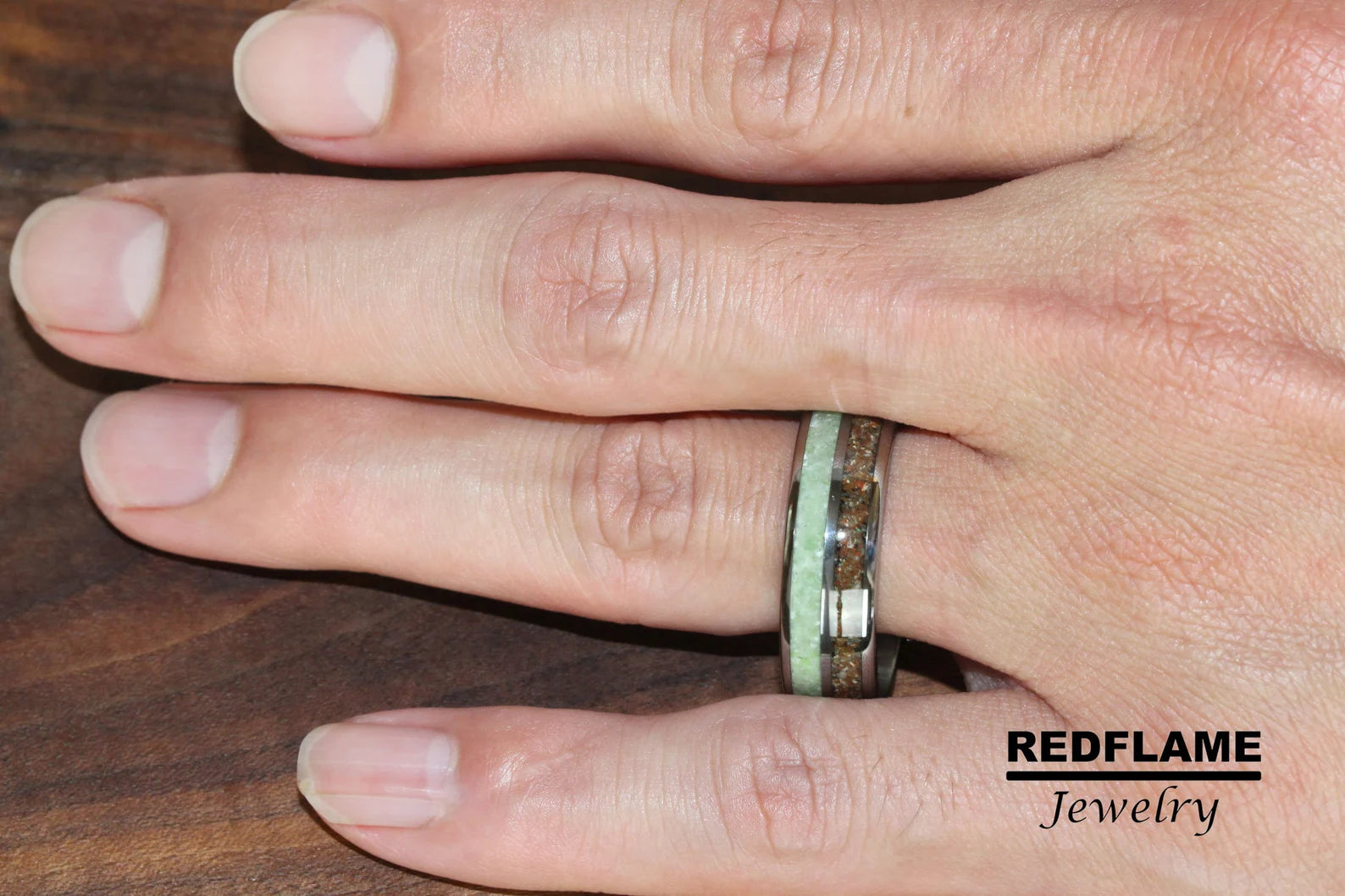 Dinosaur Bone and Jade Tungsten Ring- Custom Order – TungstenRingStudio