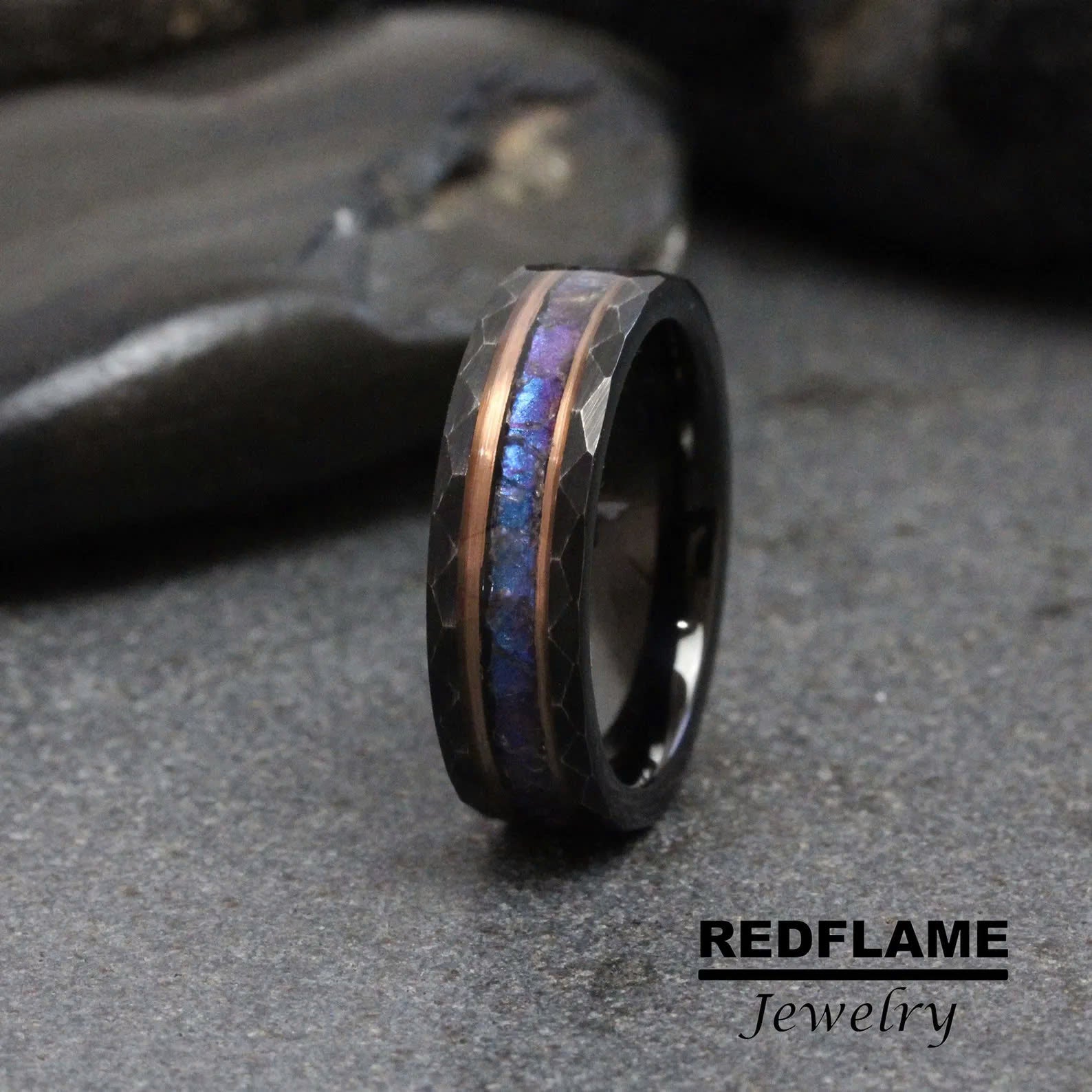Distressed Hammer Alexandrite Crushed Black Tungsten Carbide Rings - C – TungstenRingStudio