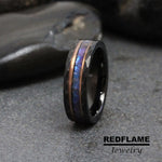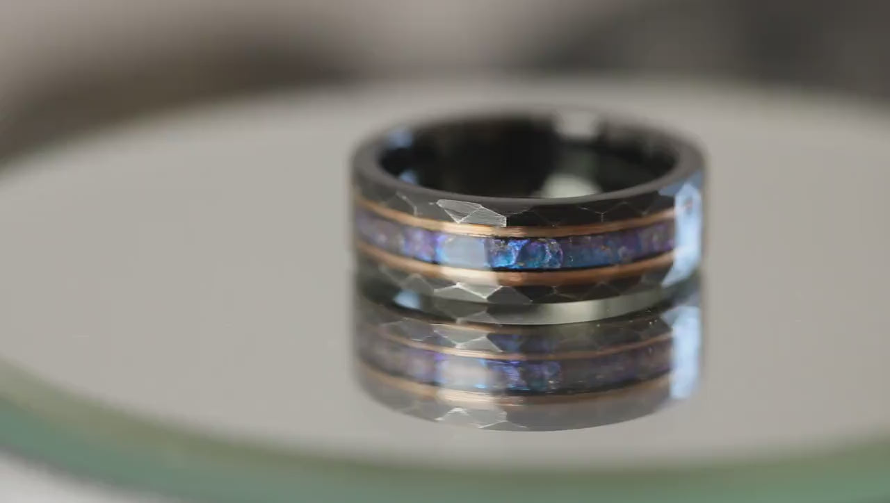Distressed Black Hammer Alexandrite Crushed Wedding Ring, Black Rose Gold Stripes Accent Changing Color Tungsten Ring Custom Order