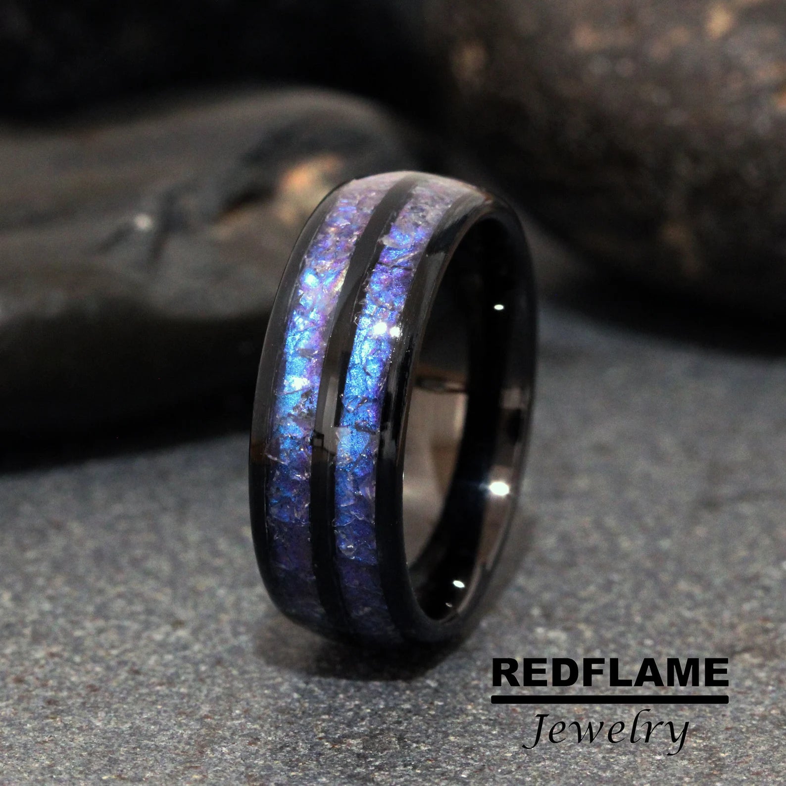 Double Inlay Alexandrite Crushed Tungsten Ring- Custom Order – TungstenRingStudio