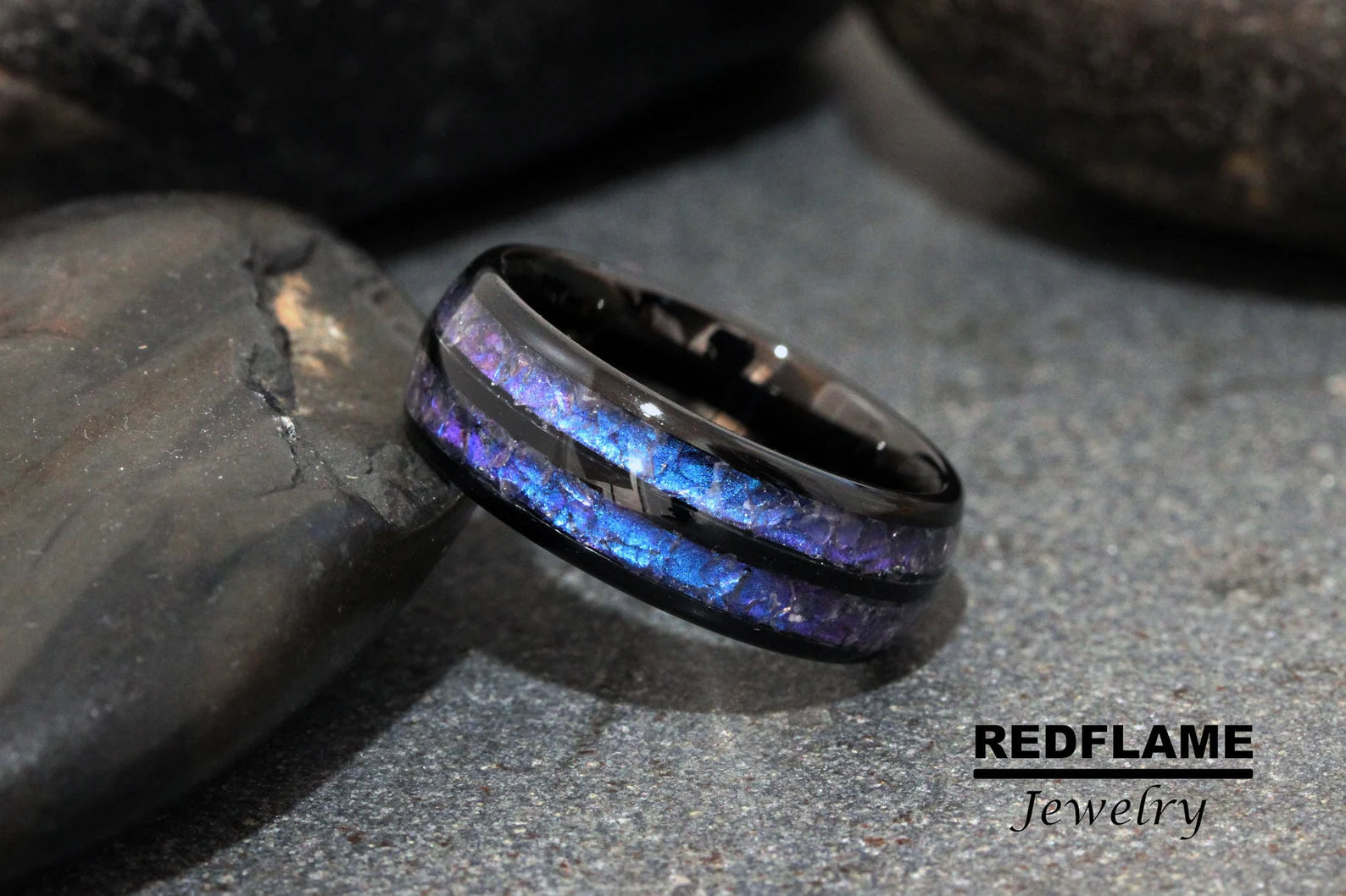 Alexandrite Crushed Wedding Ring, Black Hammer Changing Color Ring, Rose Gold Black Yellow Silver Gray Tungsten Wedding Ring, Mens Ring