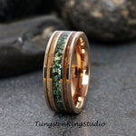 Moss Agate Whiskey Barrel Wood Wedding Ring 8mm Green Moss Wood Rose Gold Tungsten Men Band Mens Ring Men & Women RingCUSTOM ORDERS ARE WELCOME!