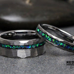 Galaxy Blue Opal Meteorite Silver Gray Tungsten Carbide Rings - Custom – TungstenRingStudio