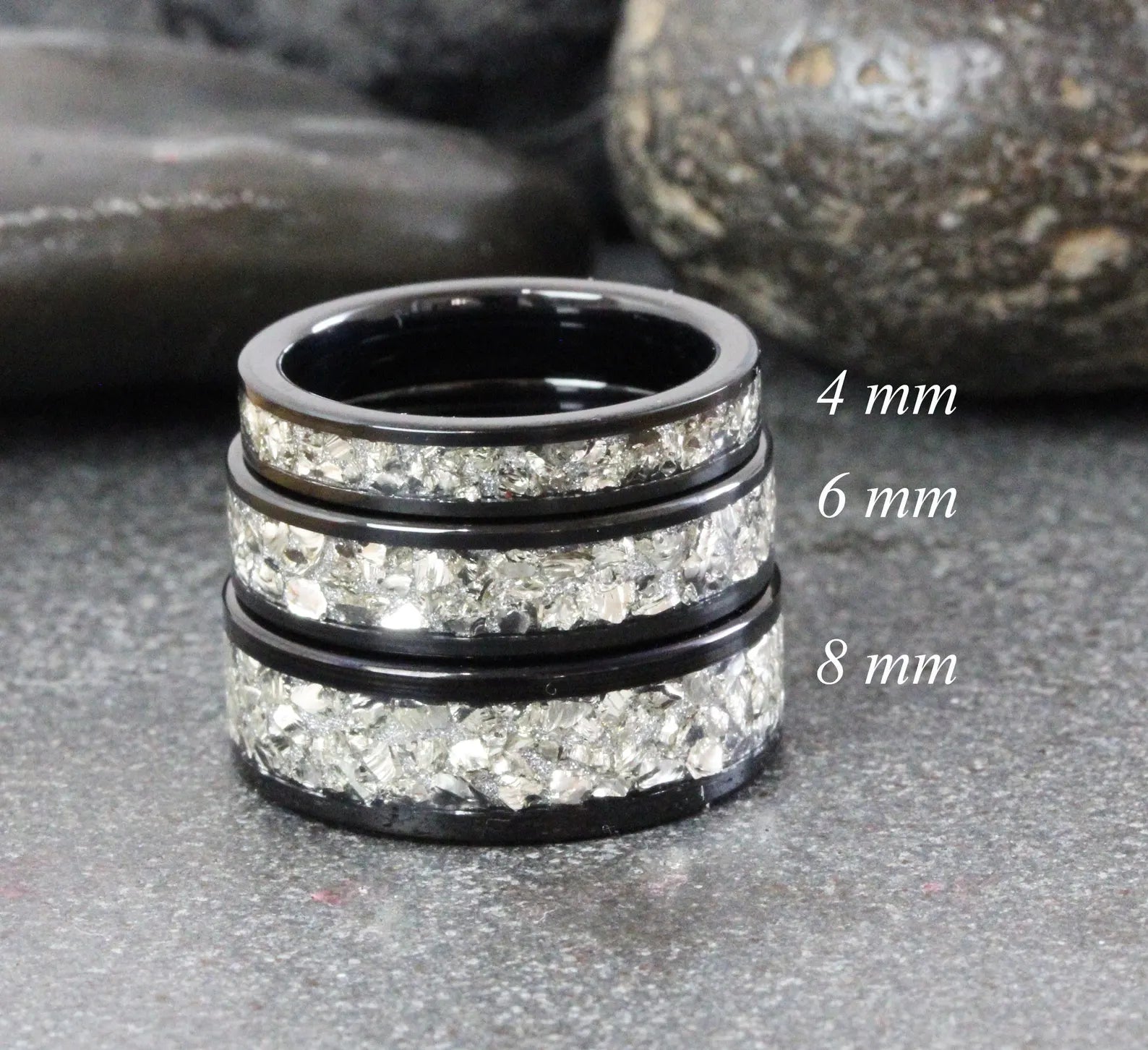 German Glass Flat Black Tungsten Carbide Ring 4mm 6 mm 8mm – TungstenRingStudio