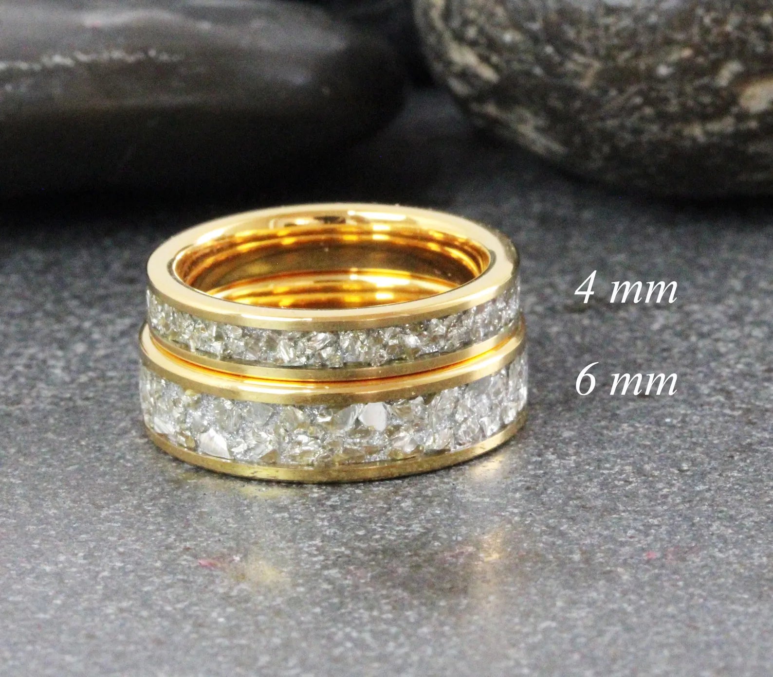 German Glass Flat Yellow Gold Tungsten Carbide Ring 4mm 6 mm 8mm – TungstenRingStudio