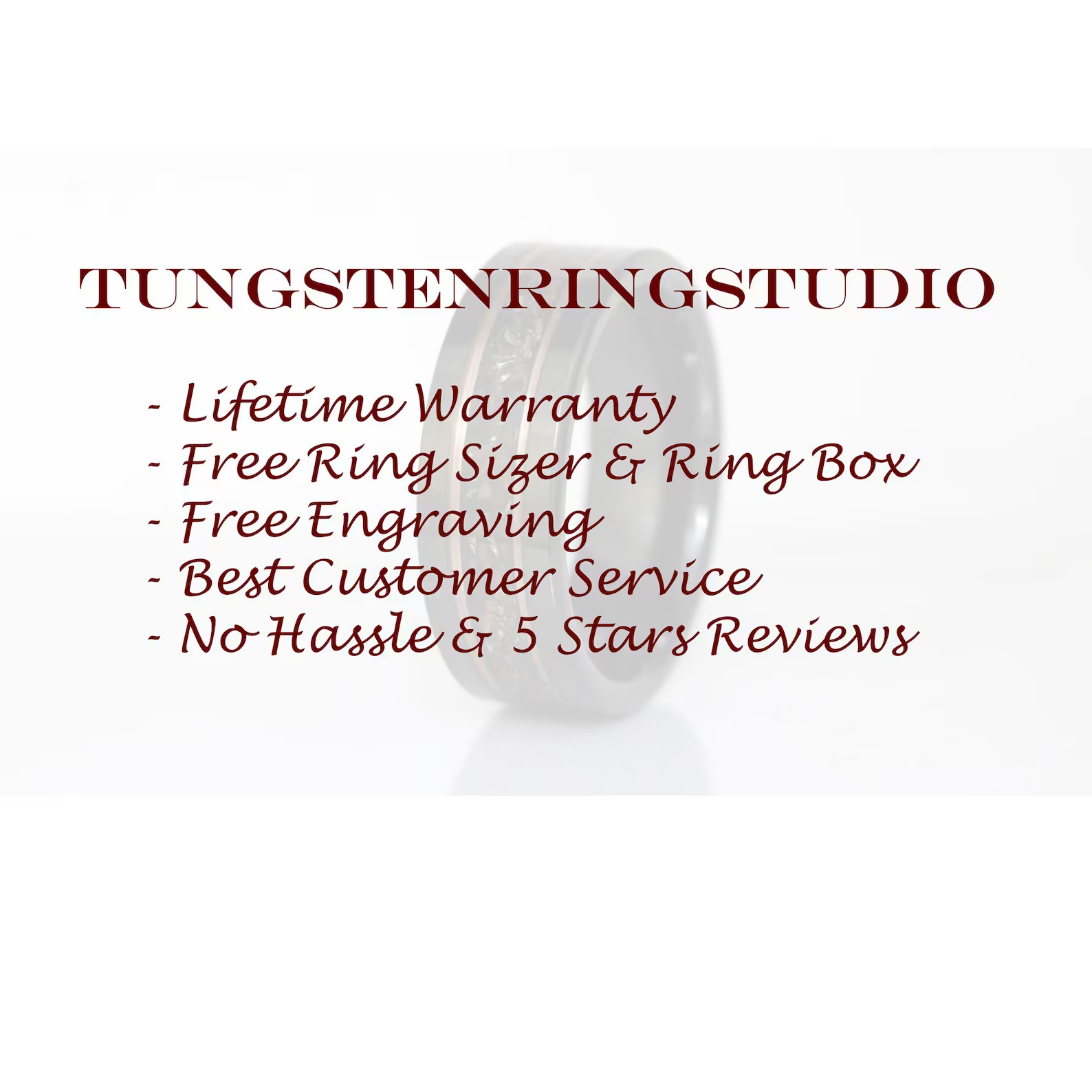 The warranty does not apply for normal wear and tear such as minor scratch. The warranty does not cover abuse wearing or sabotage action. Even though tungsten rings are the most durable and strong. Exposure to harsh chemicals (bleach,...), dropping the rings or collision to sharp objects may damage the inlaid materials and protective armor layer.