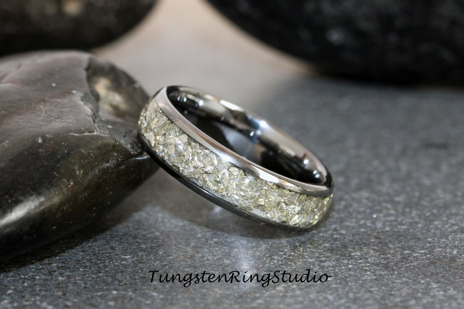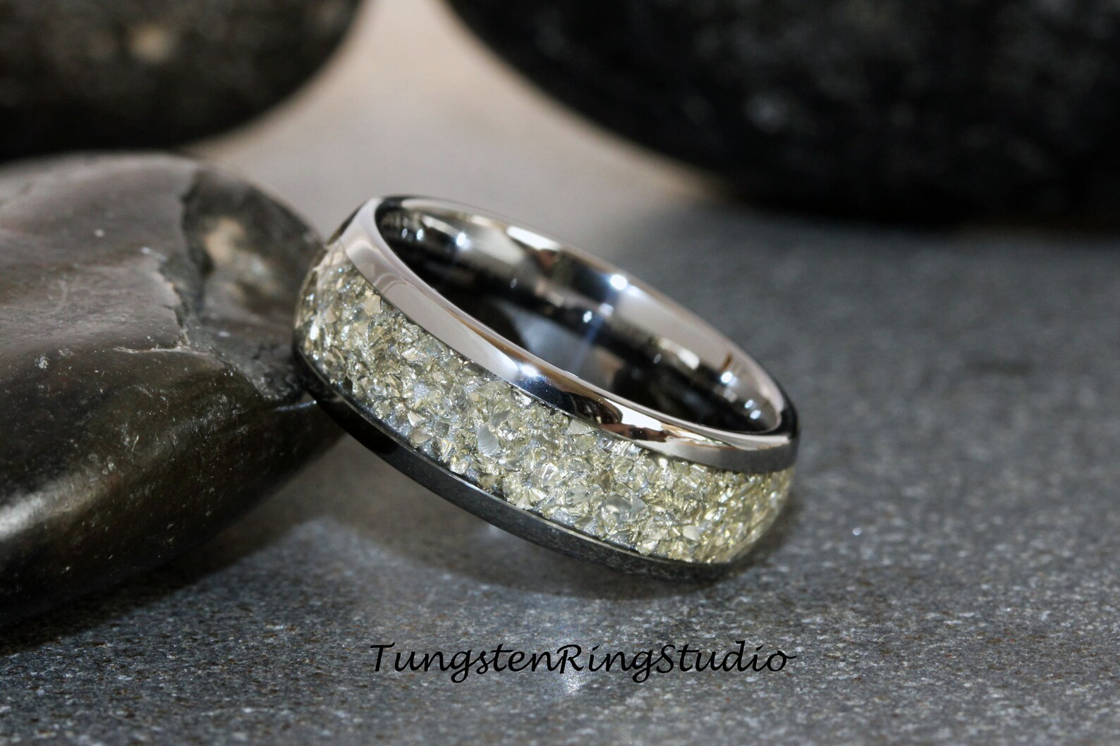 German Silver Glass Wedding band Tungsten Silver Ring Trendy Ring Womens Ring 4mm 6mm 8mm TungstenRingStudioCustom Orders are welcome!