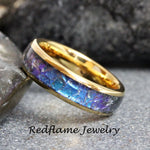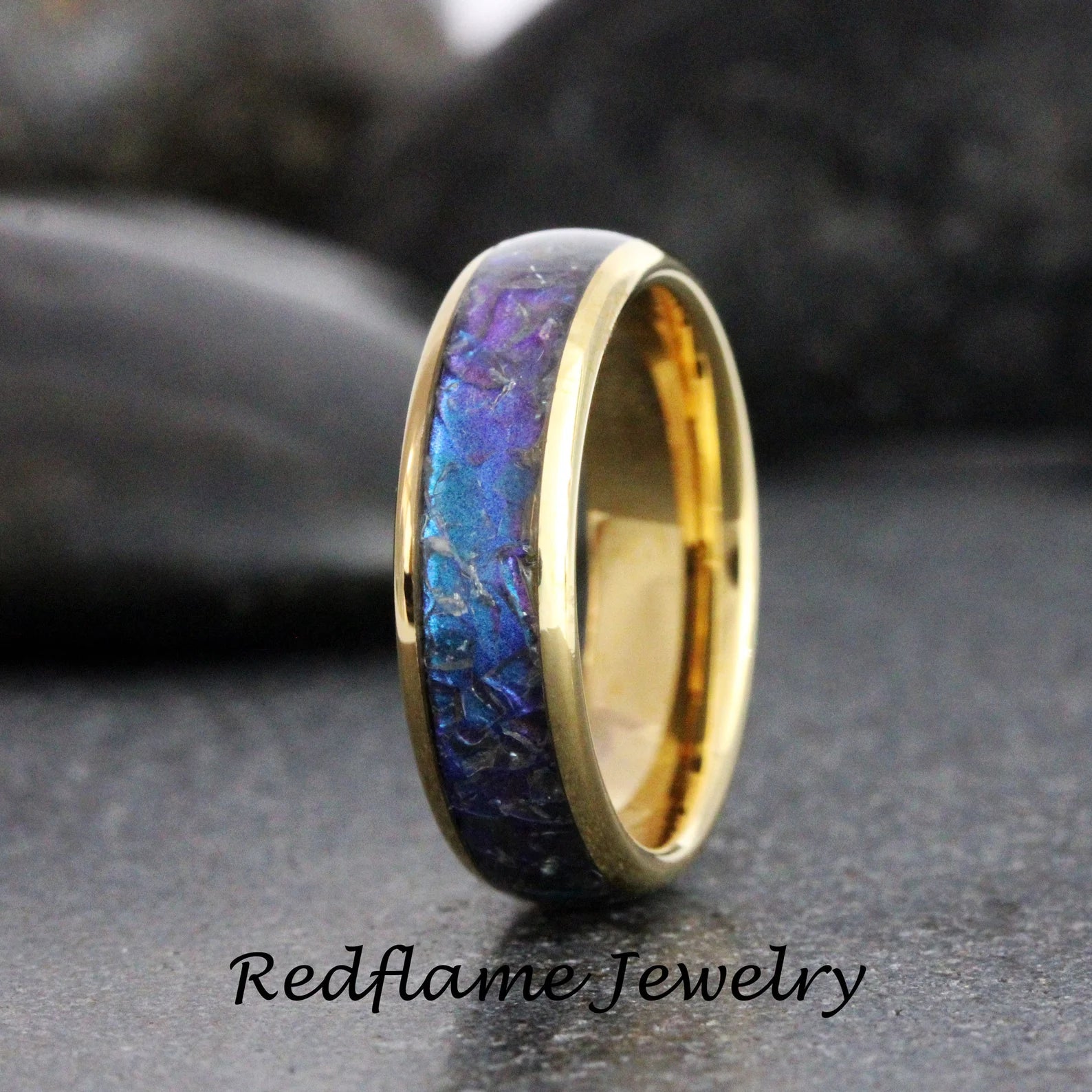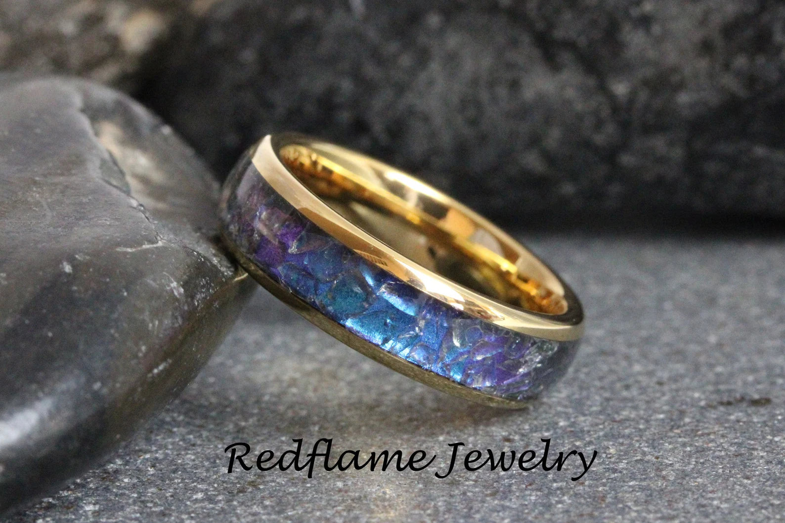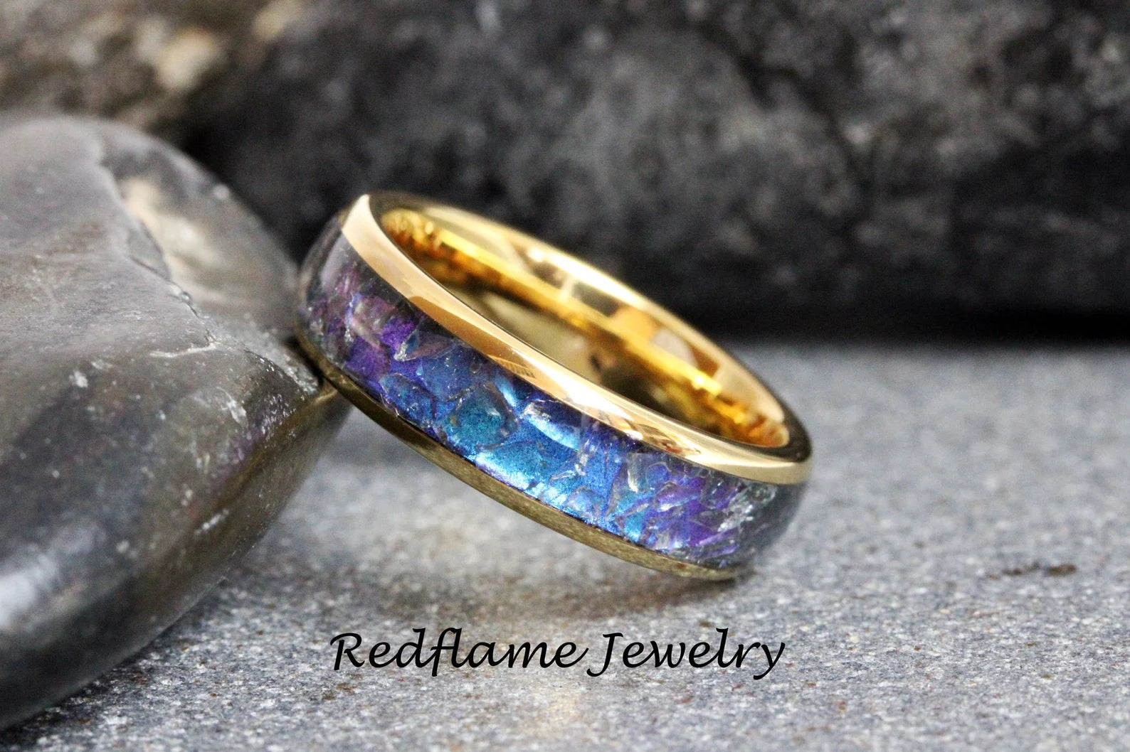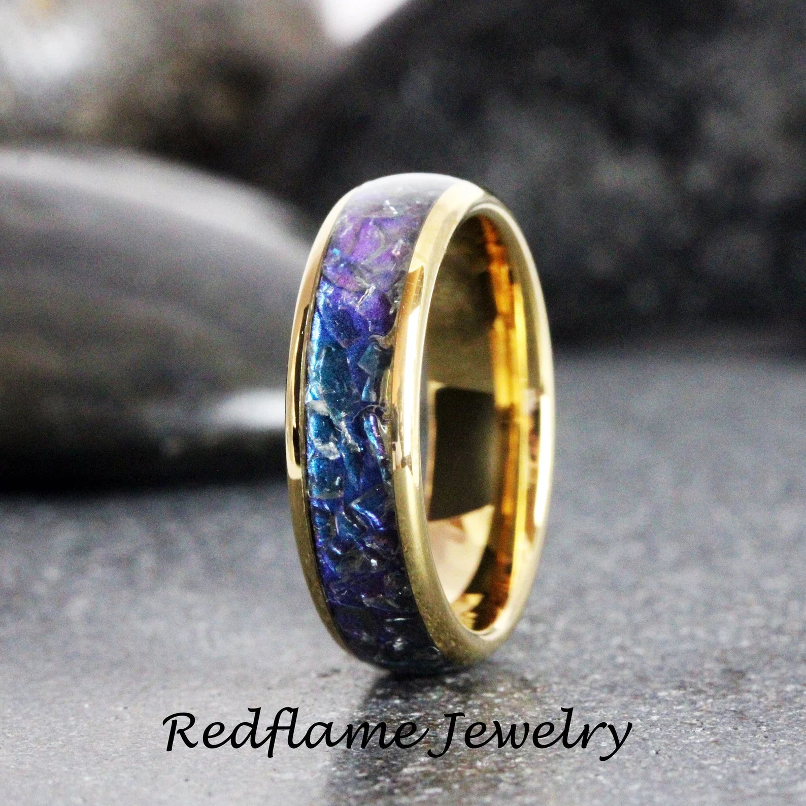 Gold Alexandrite Crushed Wedding Ring, 6mm Changing Color Ring, Rose Black Yellow Silver Gray Tungsten Wedding Ring, Mens Ring Custom Order