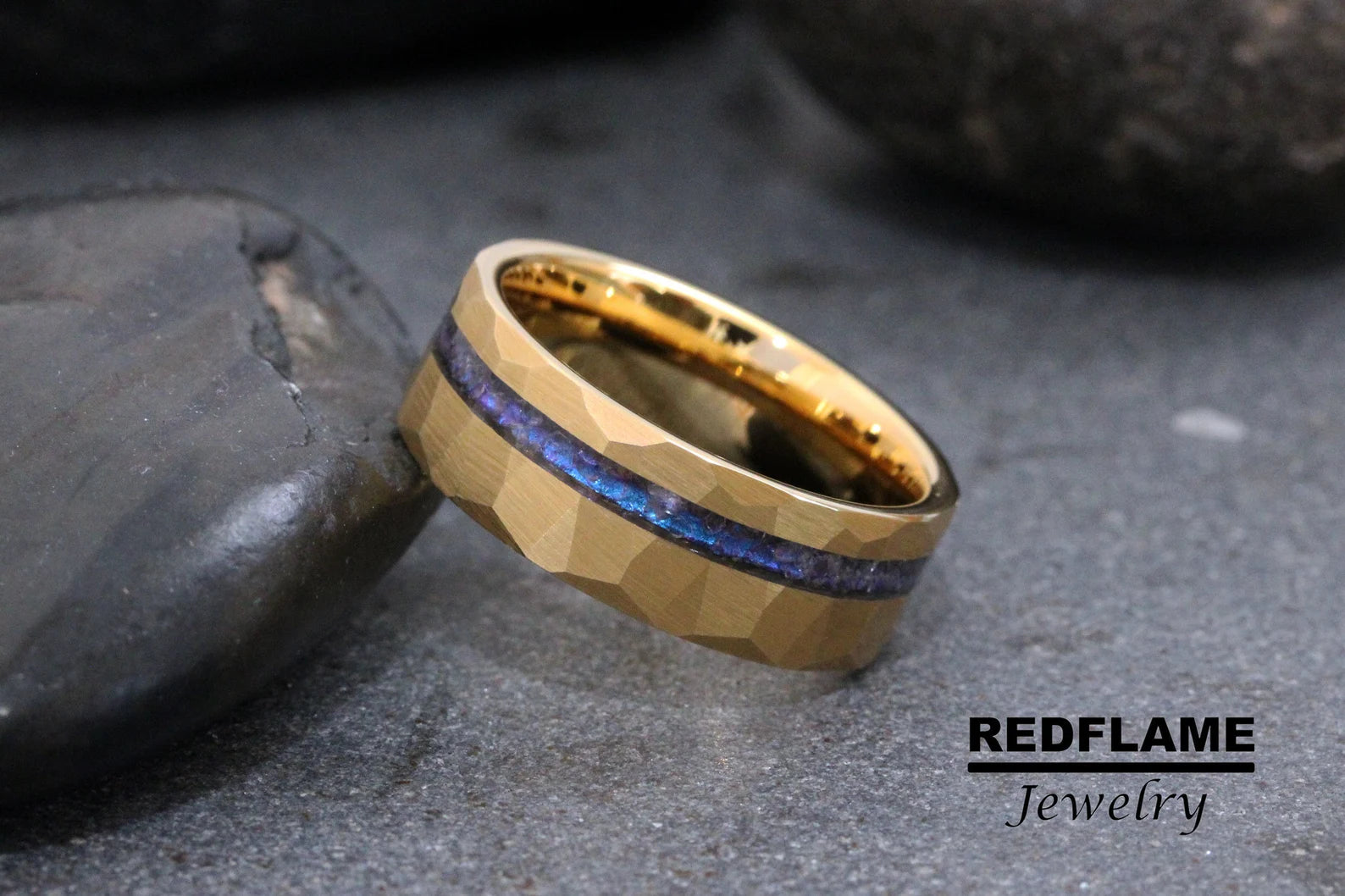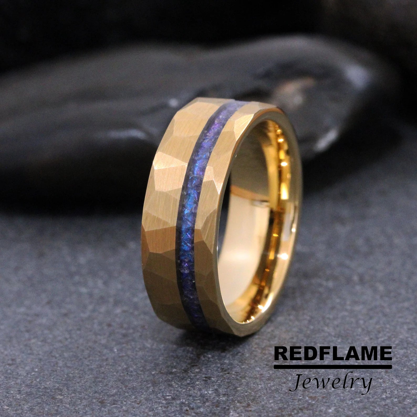 Alexandrite Crushed Gold Hammered Tungsten Ring- Custom Order – TungstenRingStudio