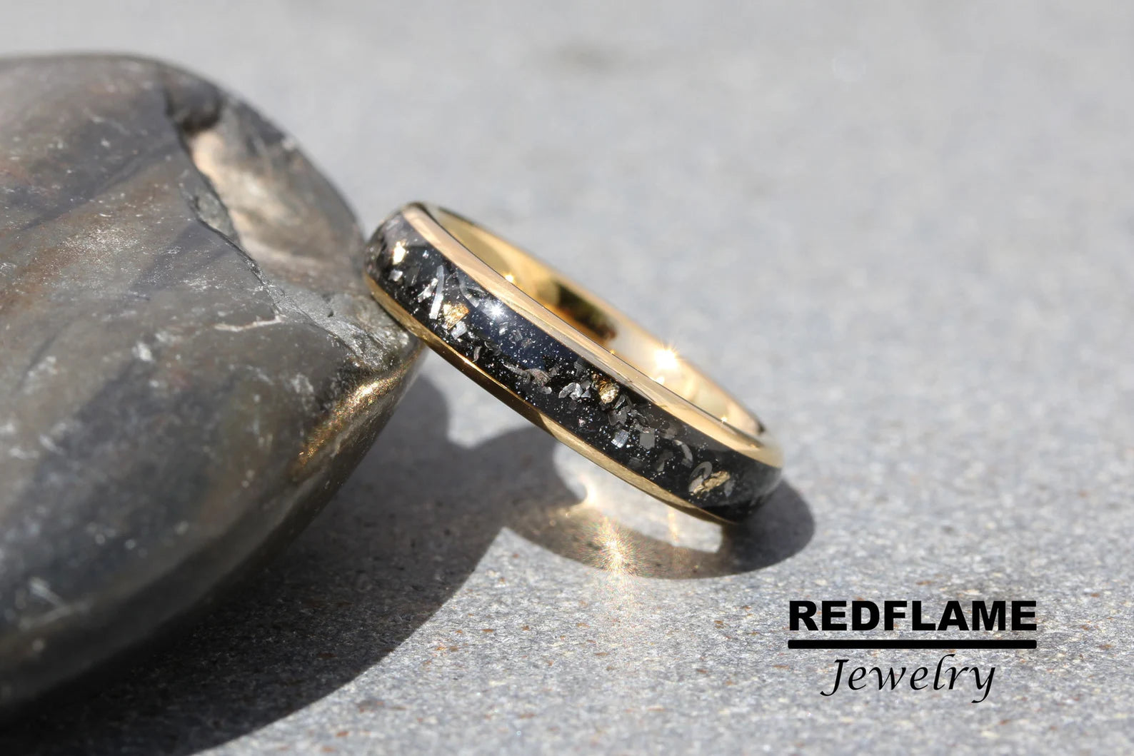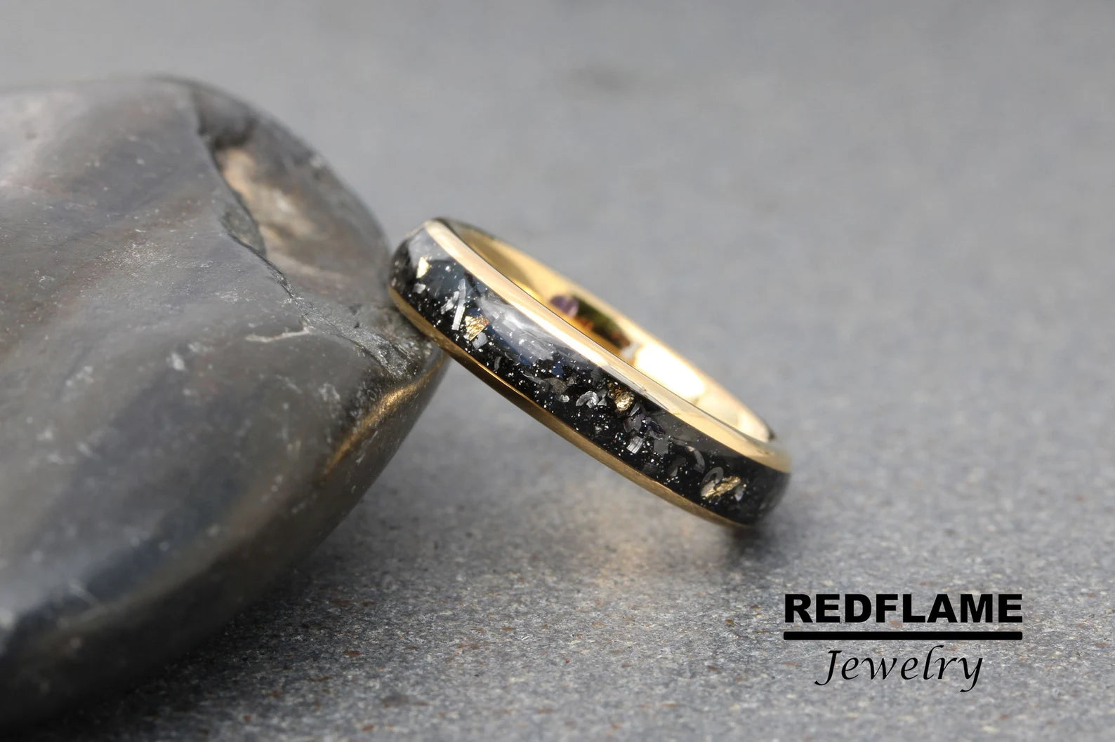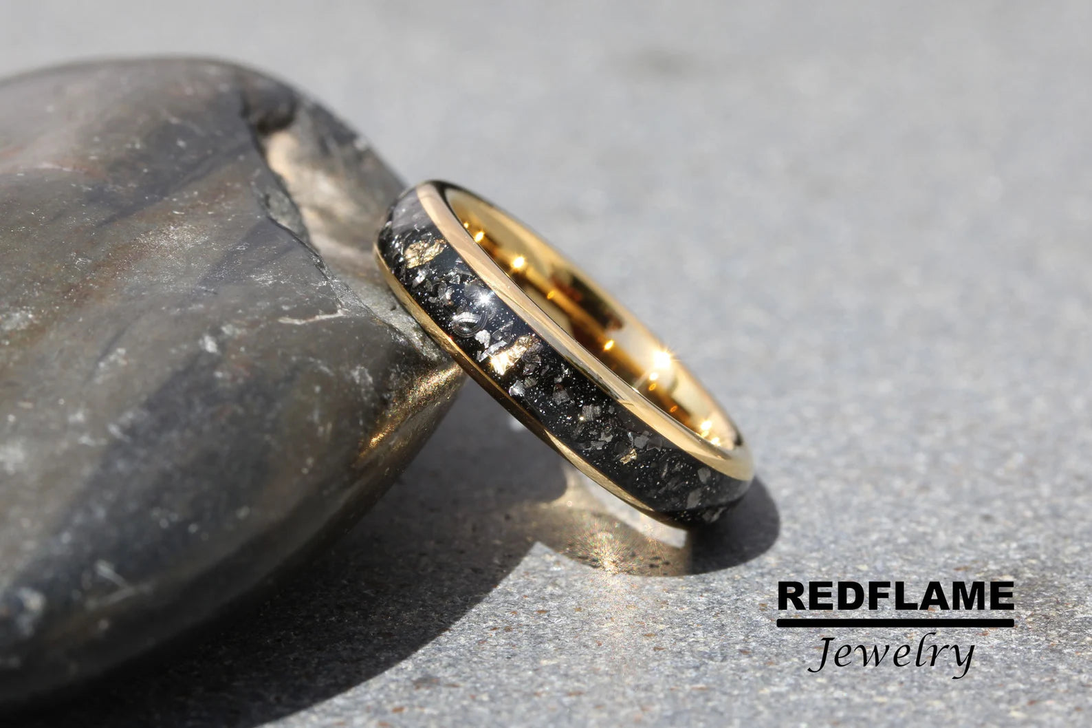 Gold Foil Leaf Meteorite Tungsten Ring- Custom Order – TungstenRingStudio