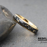 Combo Double Inlay: Gibeon Meteorite Shaving and a few pieces of 22K Gold Goil Leaf Tungsten Wedding Ring