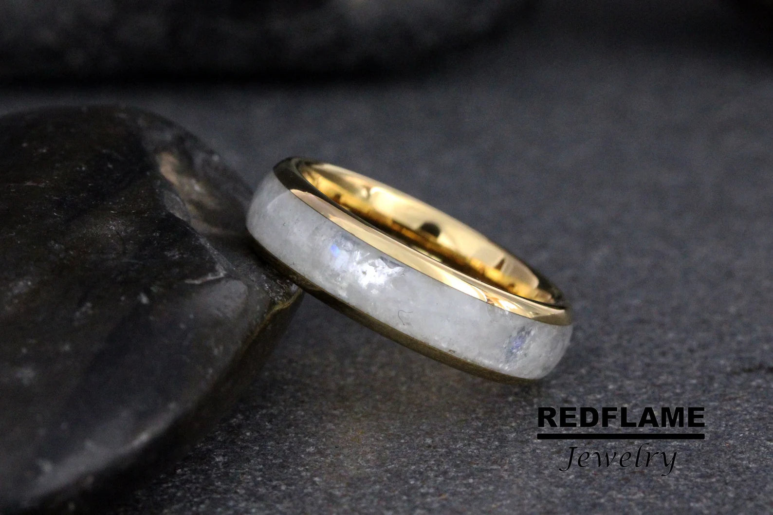 Rainbow Moonstone Tungsten Ring- Custom Order – TungstenRingStudio