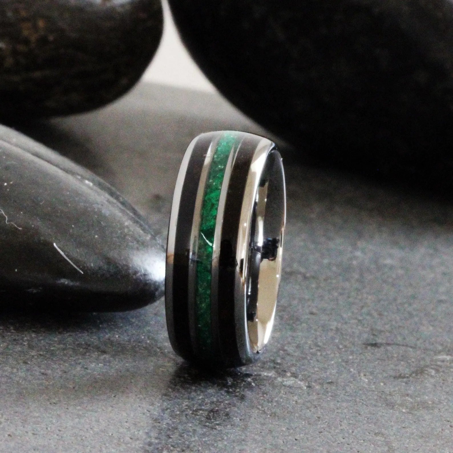 Green Emerald Coffee Silver Gray Tungsten Carbide Rings - Custom Order – TungstenRingStudio