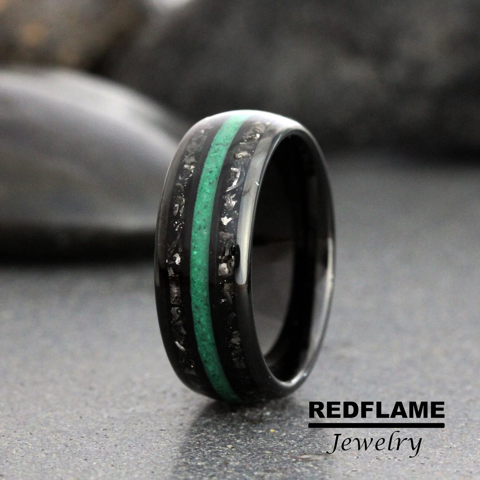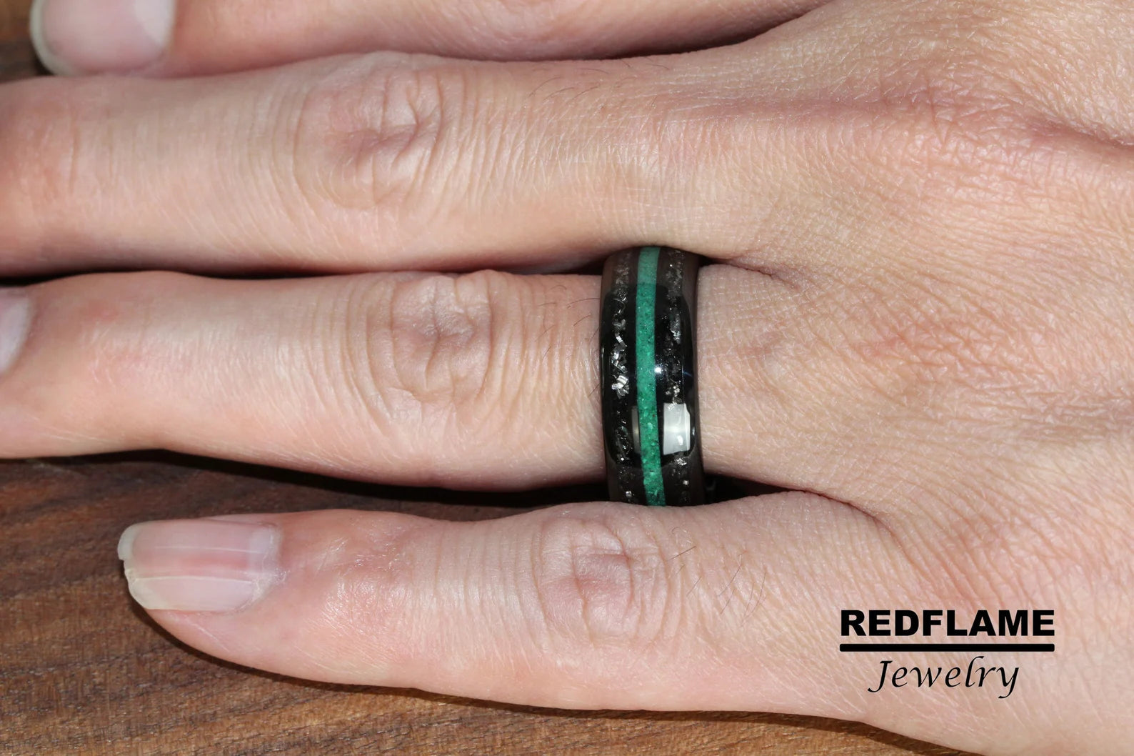 Green Malachite Meteorite Tungsten Ring- Custom Order – TungstenRingStudio