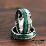 Green Malachite Deer Antler Tungsten Ring- Custom Order – TungstenRingStudio
