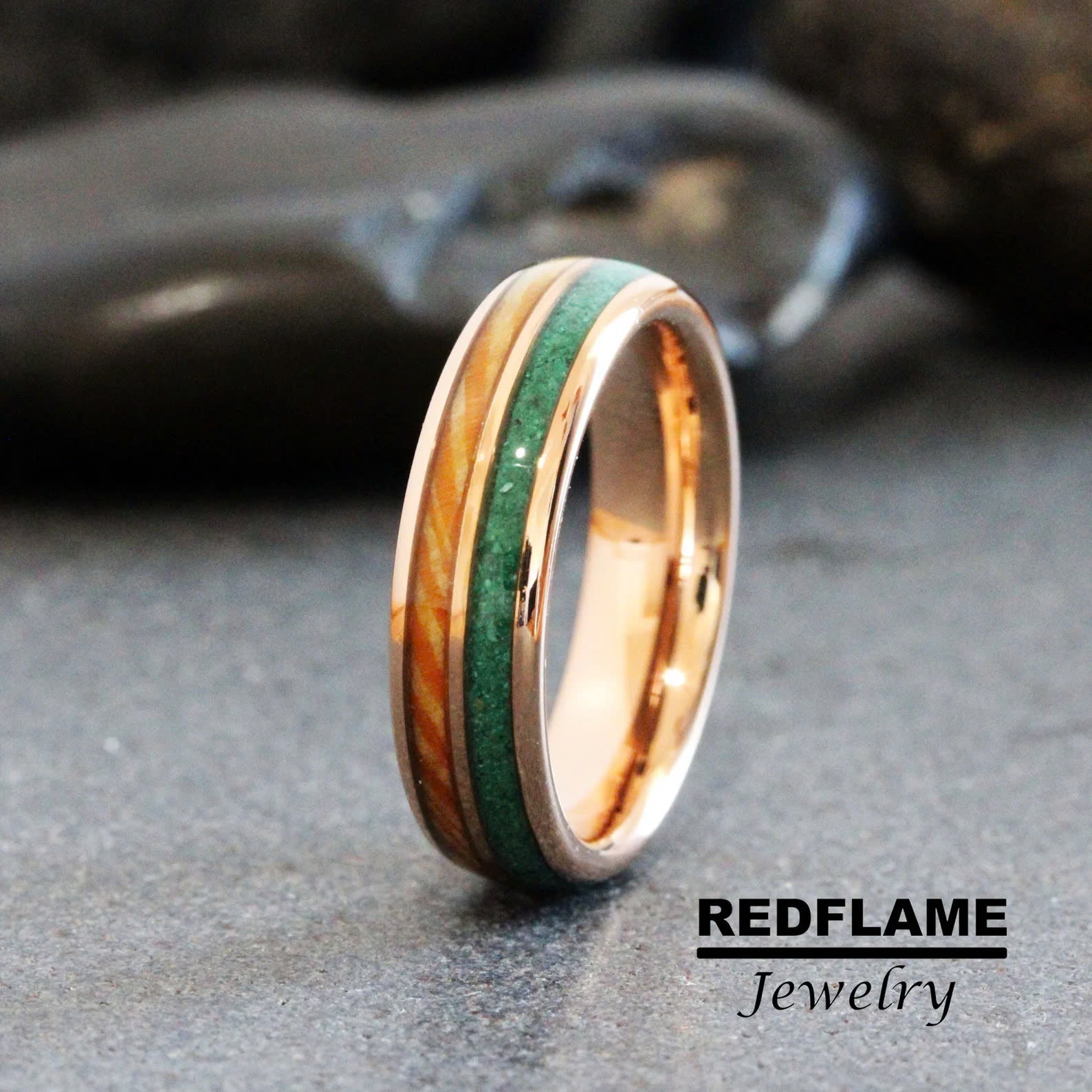 Green Malachite Woo Rose Gold Tungsten Carbide Rings - Custom Order – TungstenRingStudio