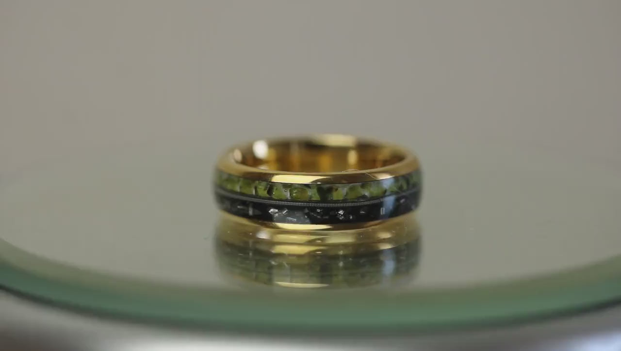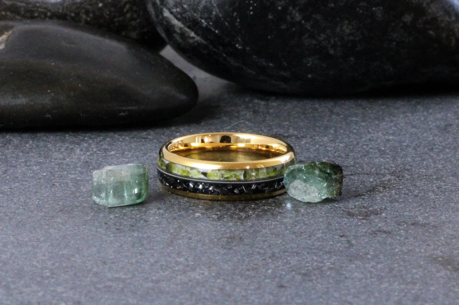 Green Tourmaline Guitar String Meteorite Yellow Glod Tungsten Carbide – TungstenRingStudio