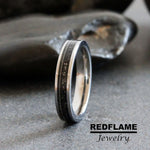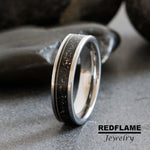 Double Inlay: Gibeon Meteorite Shaving, and Guitar string Tungsten Carbide Wedding Ring