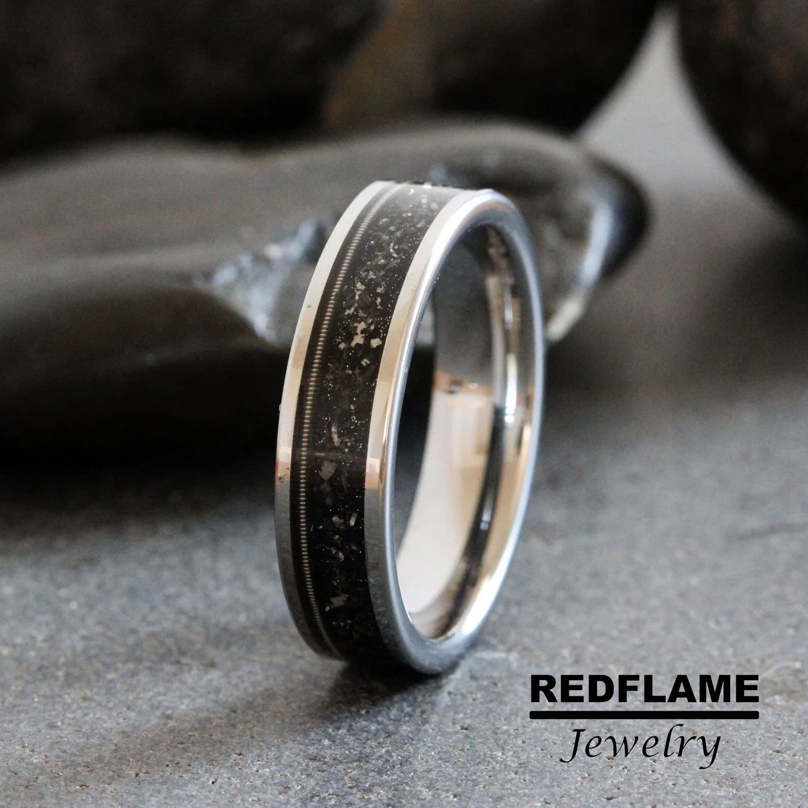 Guitar String Gibeon Meteorite Silver Gray Tungsten Carbide Rings - Cu – TungstenRingStudio