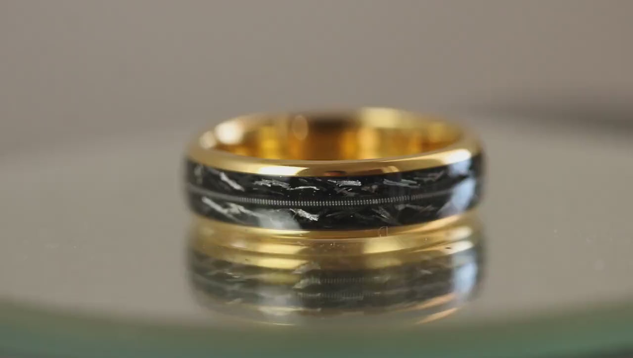 Guitar String Meteorite Yellow Gold Tungsten Carbide Rings - Custom Or – TungstenRingStudio