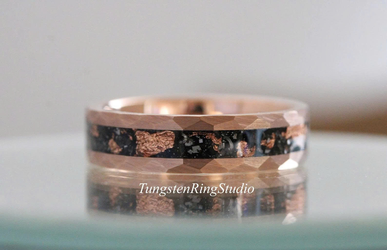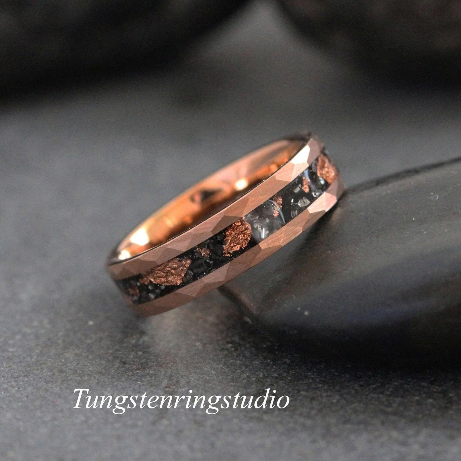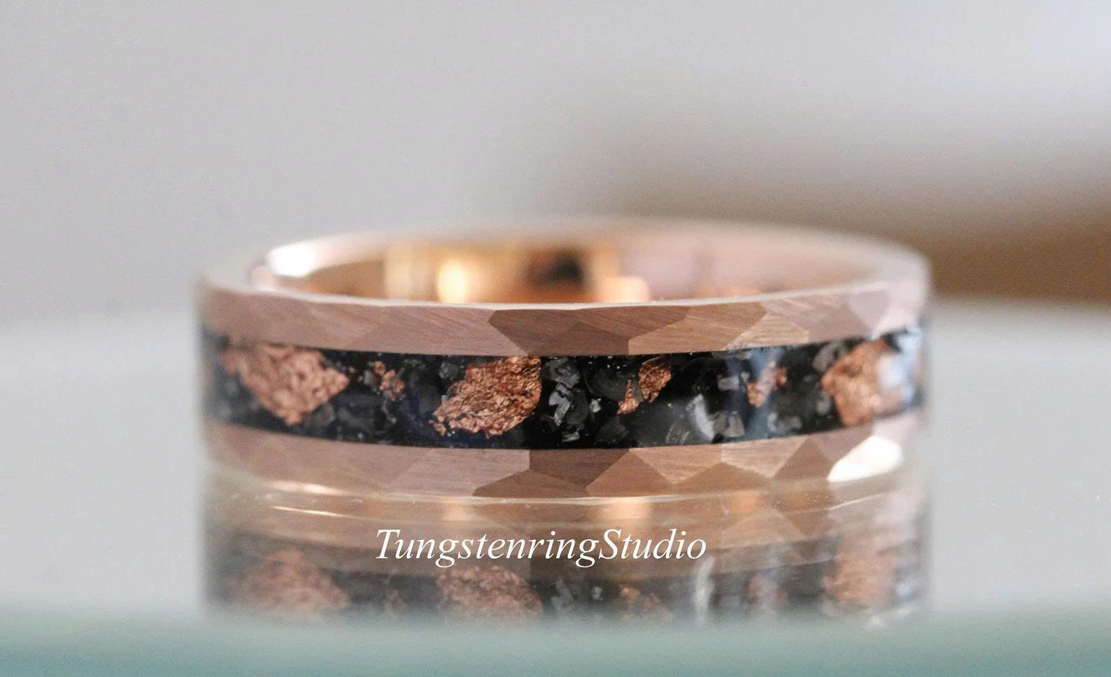 Hammer Copper Leaf Meteorite Rose Gold Tungsten Ring 4mm 6mm 8mm – TungstenRingStudio