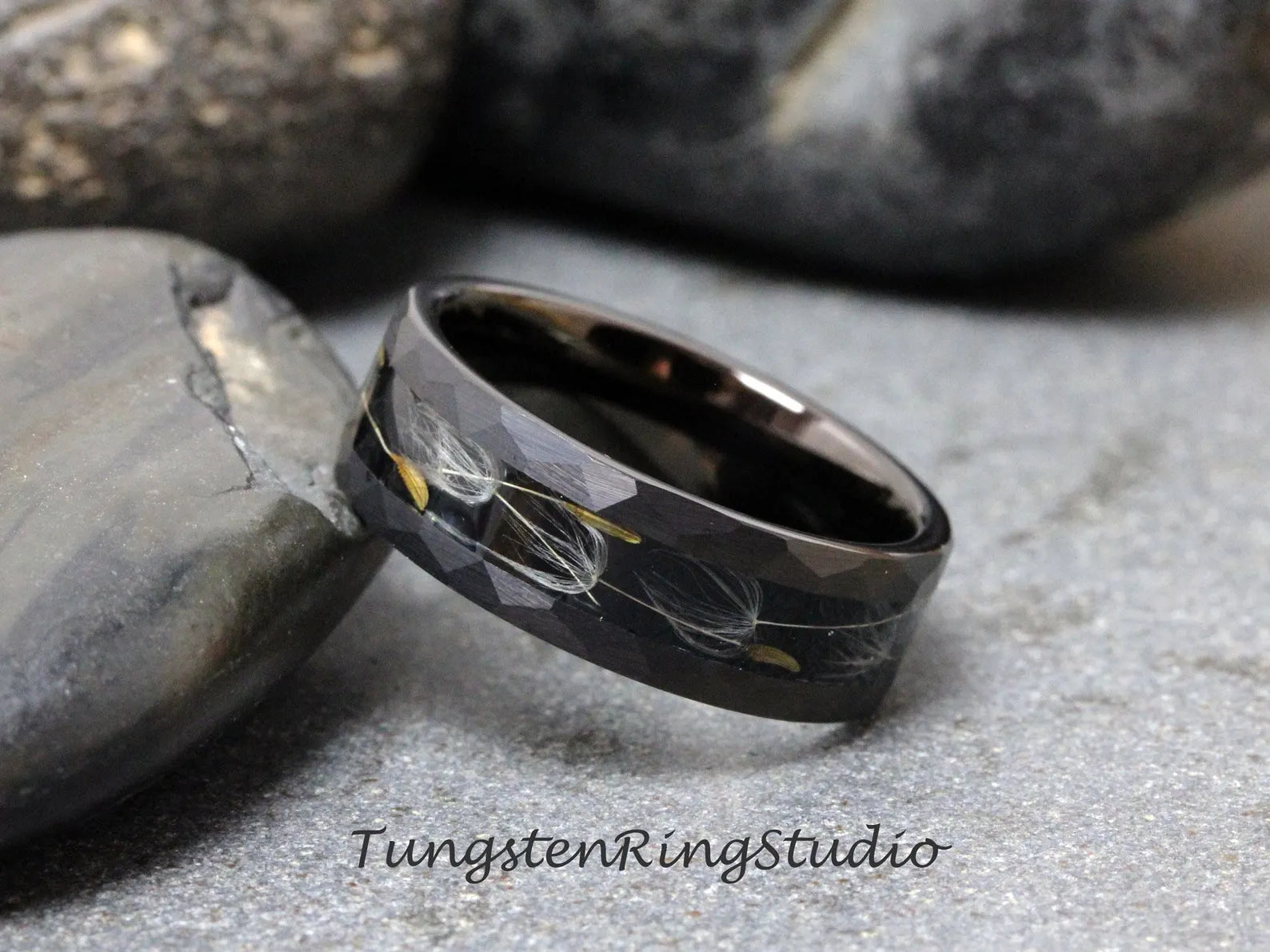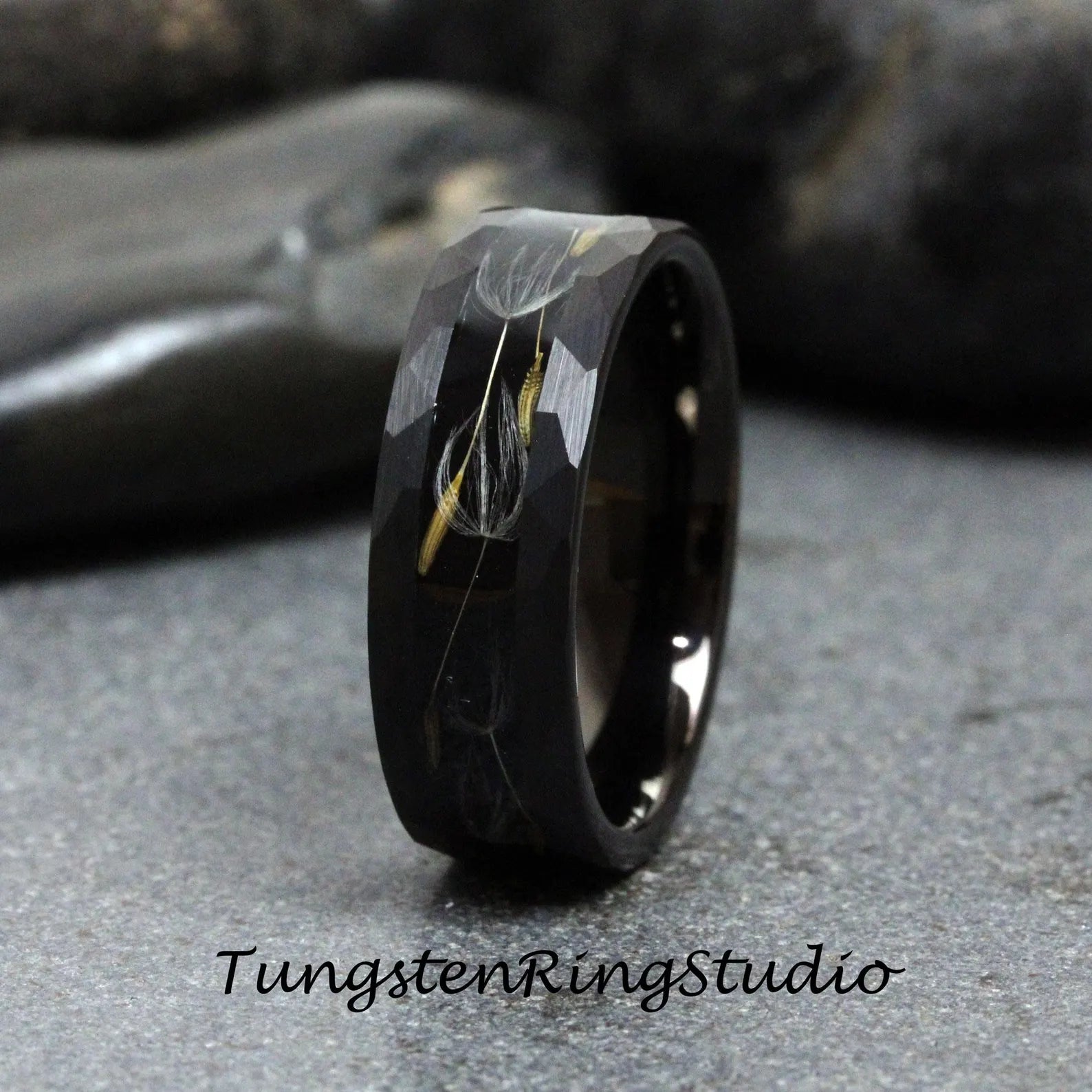 Hammer Dandelion Seed Gray Polish Tungsten Carbide Ring – TungstenRingStudio