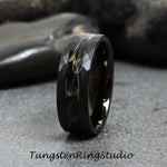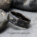 Amazing combination of Black Carbon Fiber and Imitated Meteorite creates a desired wedding ring, anniversary ring for couples. The meteorite and carbon fiber are inlaid over the groove of the tungsten setting, and finally covered with our protective armor layer that shields it from water, dirt, and grime in order to protect the inlays inside. The rings look great for every day or on your occasions.