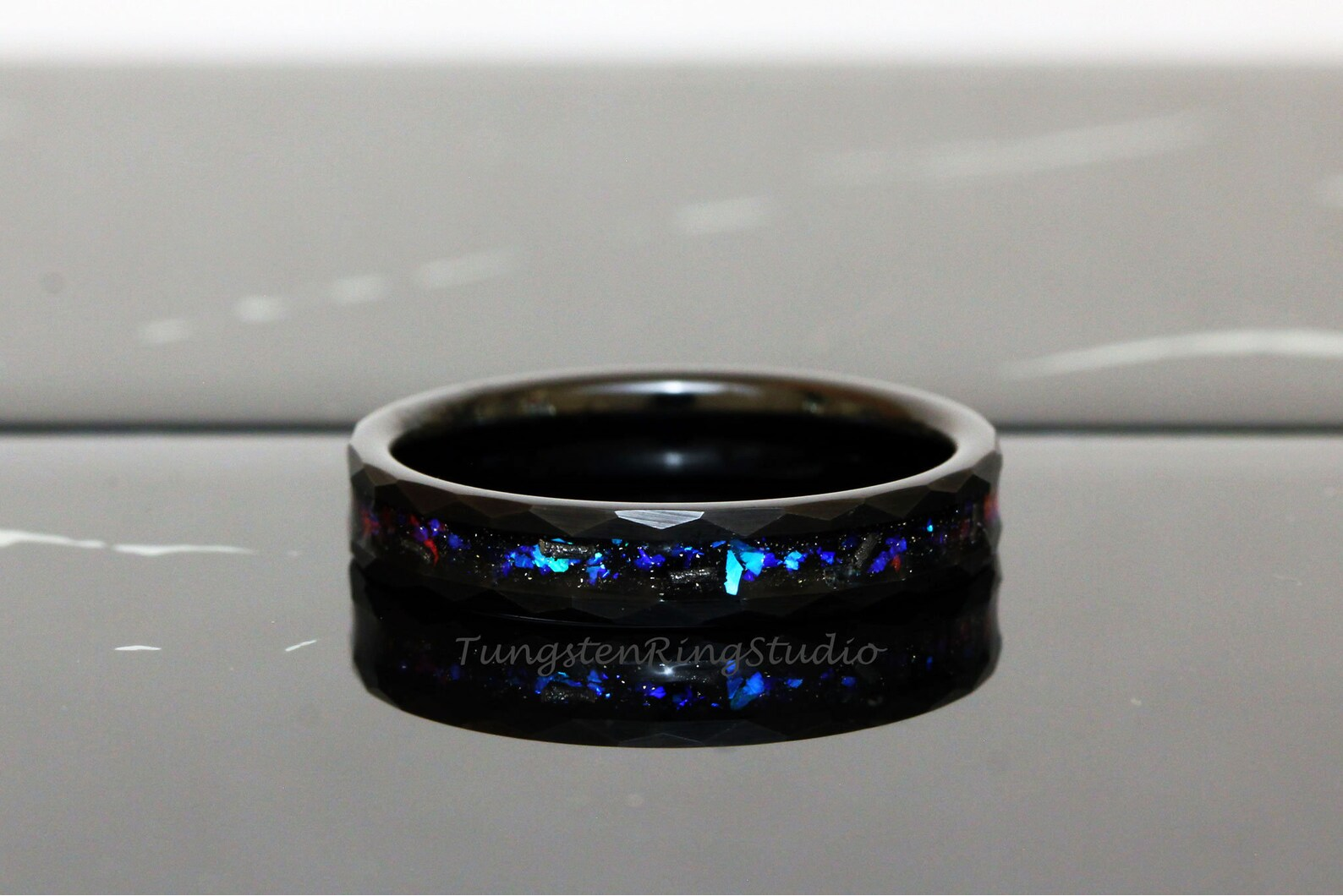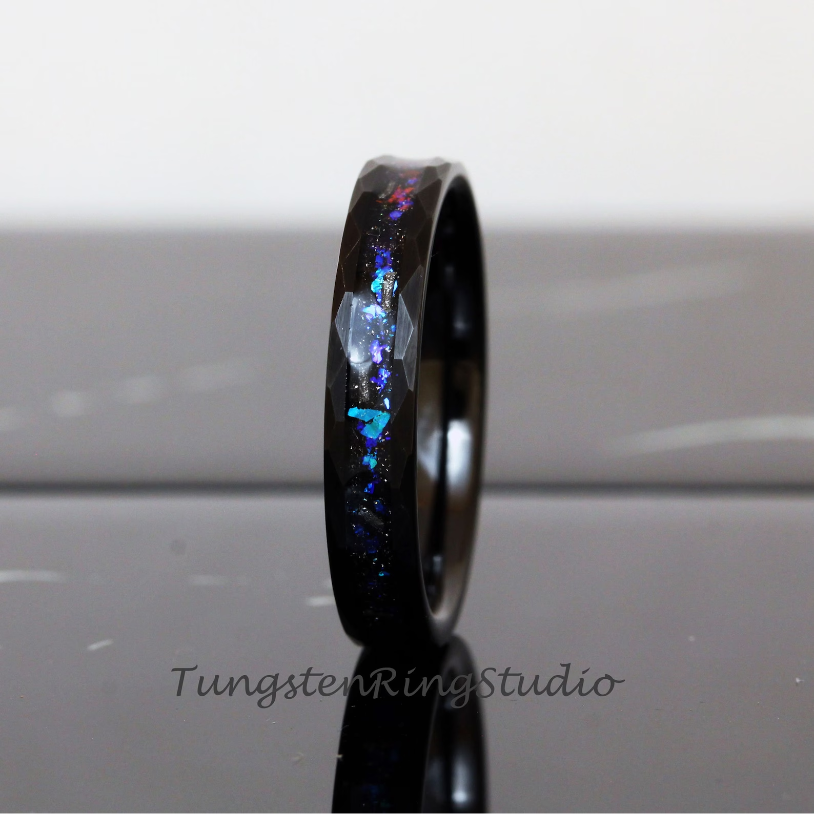 Meteorite Nebula Black Hammered Tungsten Ring 4mm – TungstenRingStudio