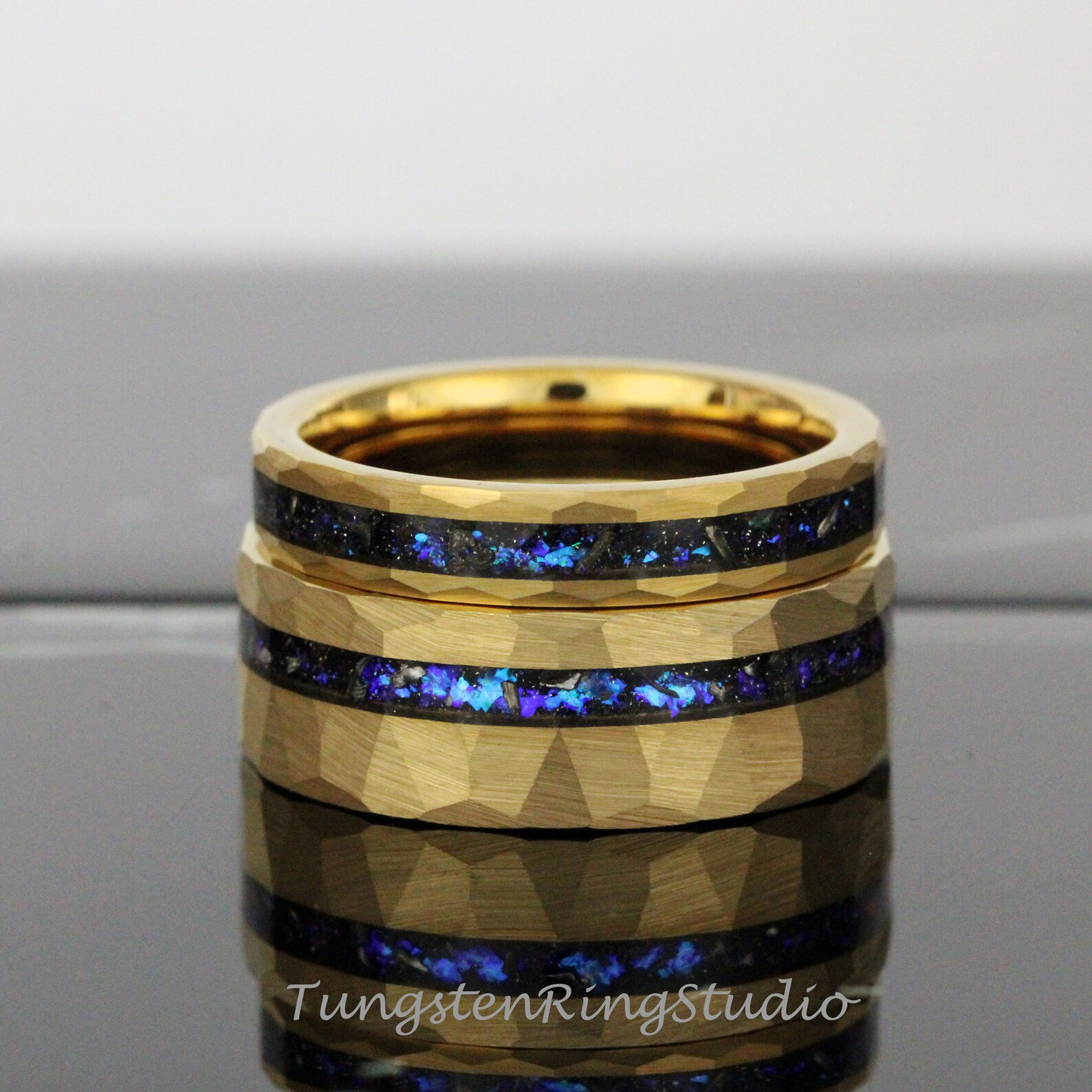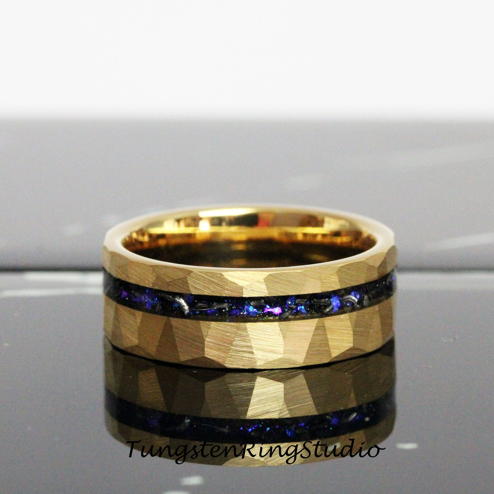 Meteorite Nebula Hammered Yellow Gold Tungsten Ring 8mm – TungstenRingStudio