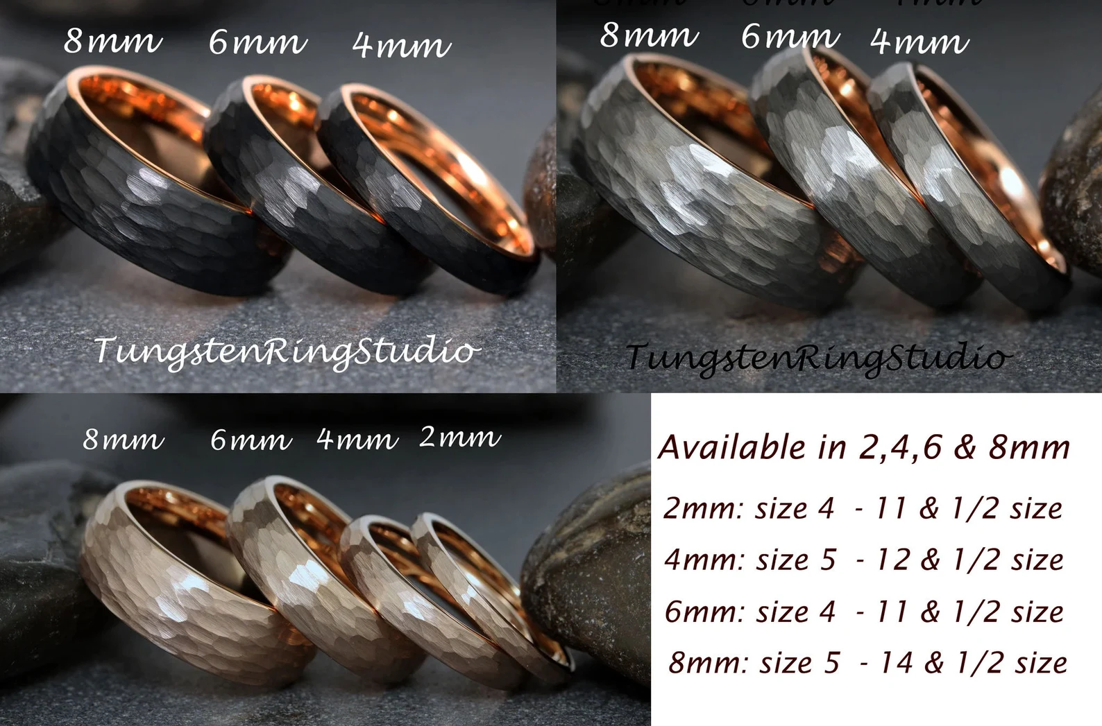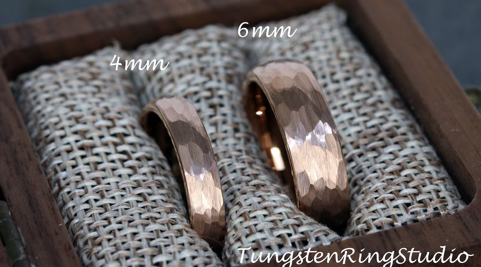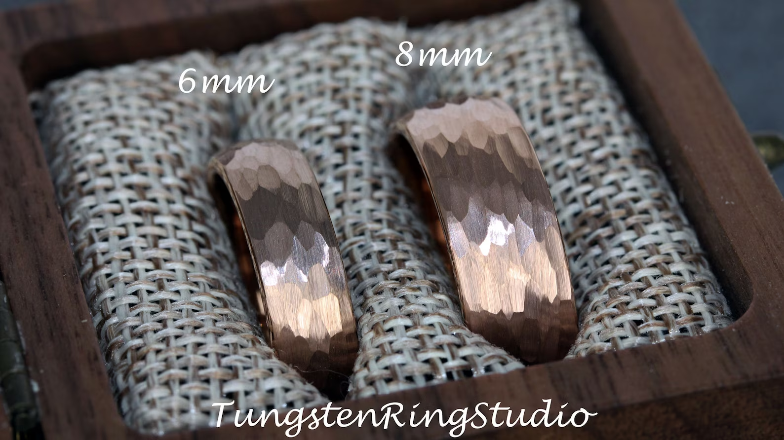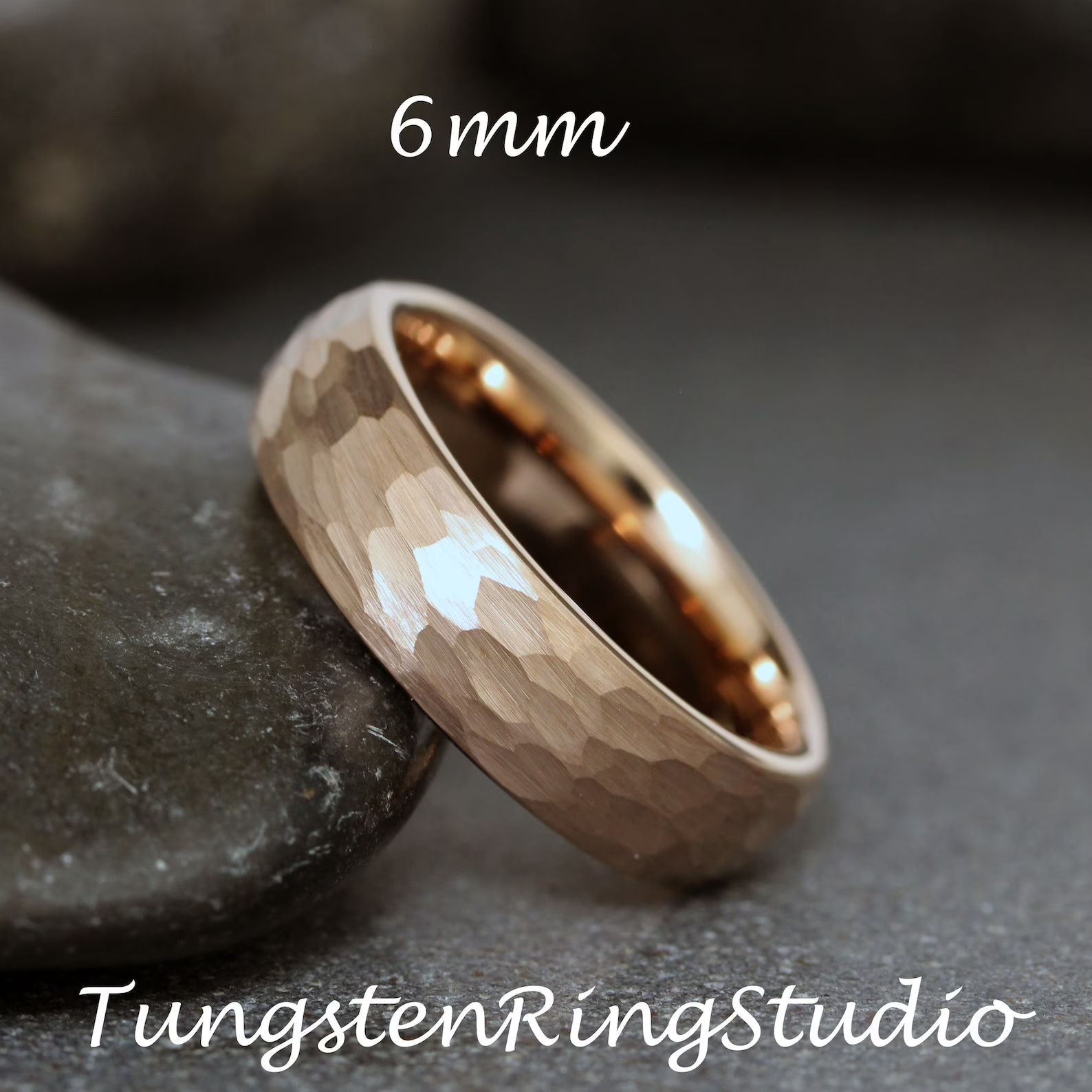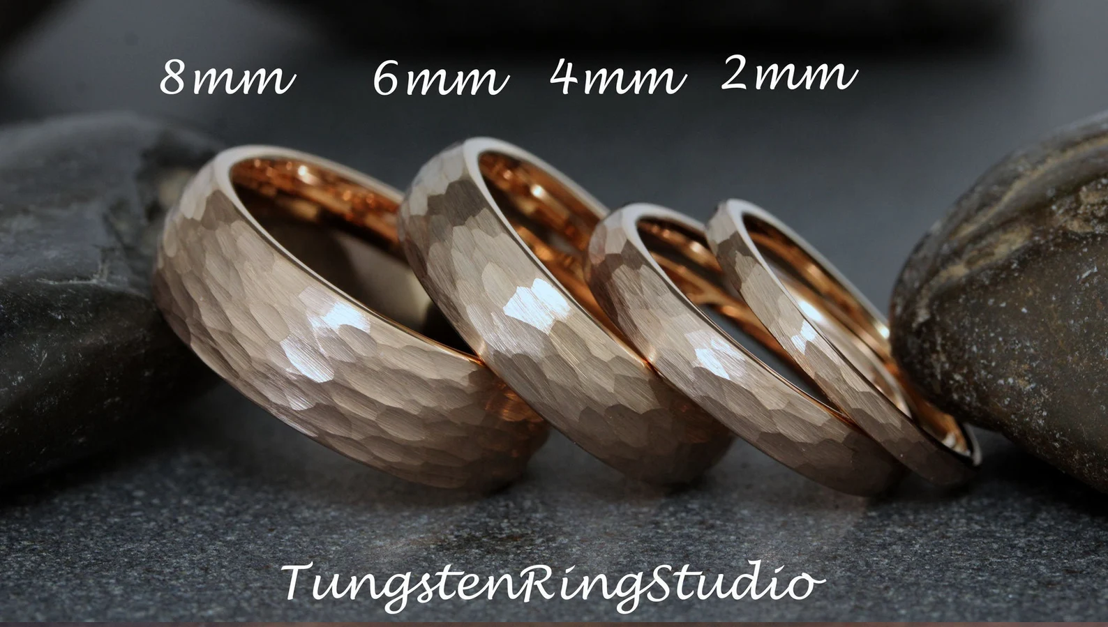Hammered Rose Gold Tungsten carbide Ring 2 mm 4 mm 6 mm 8 mm – TungstenRingStudio