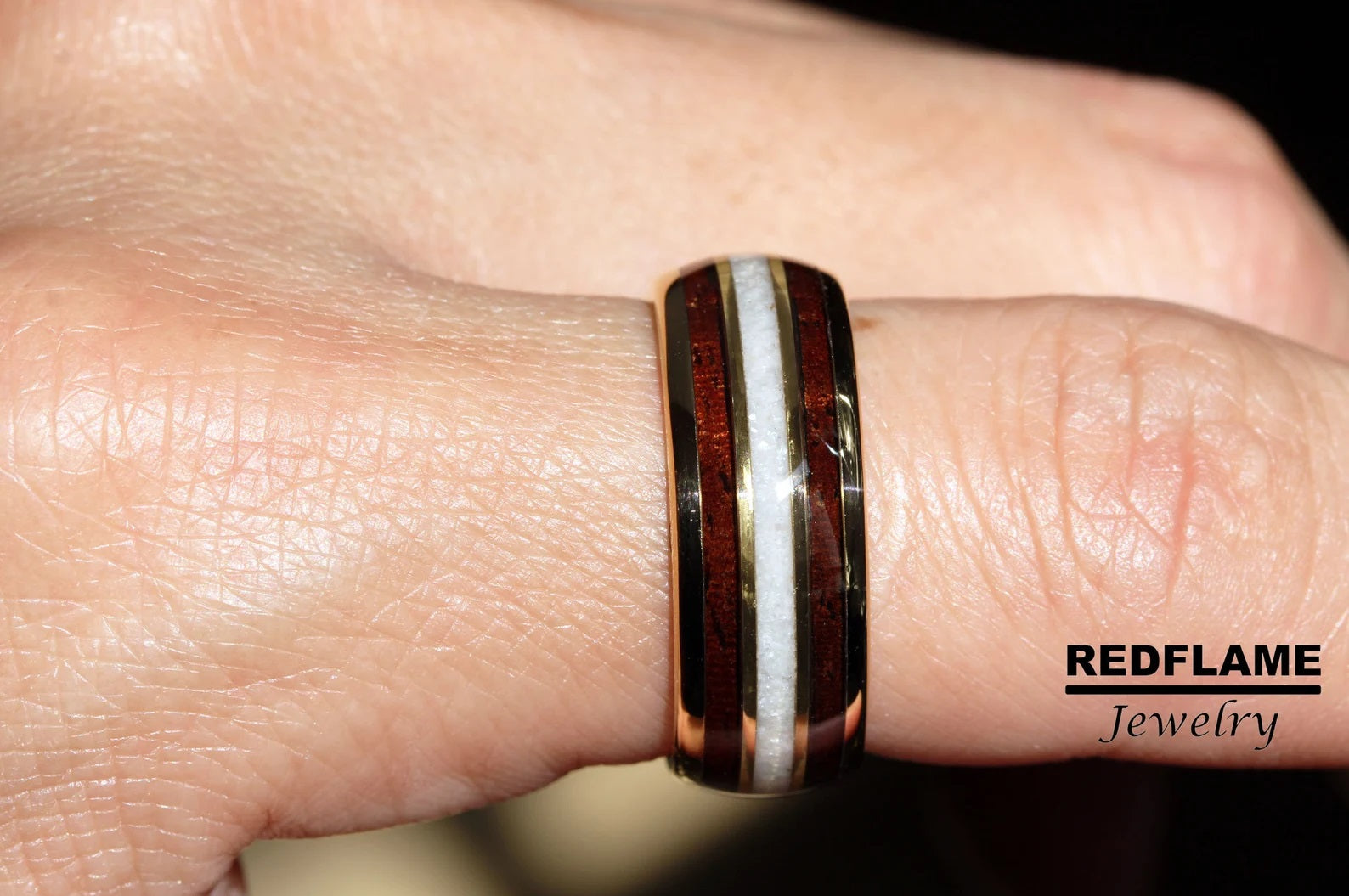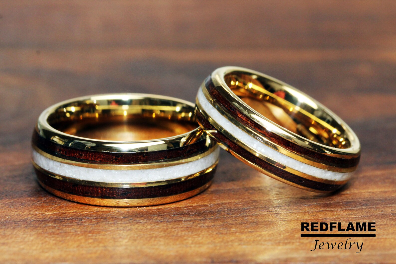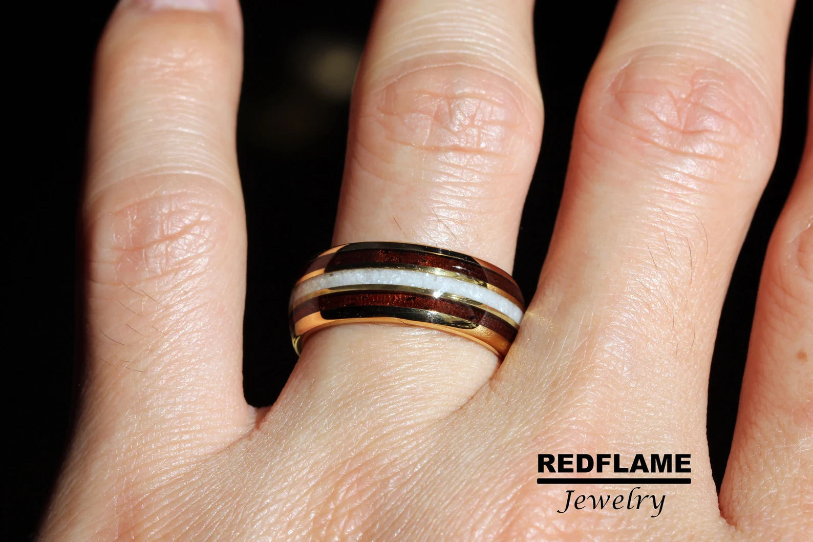 Koa Wood Crushed Mother of Pearl Tungsten Ring- Custom Order – TungstenRingStudio