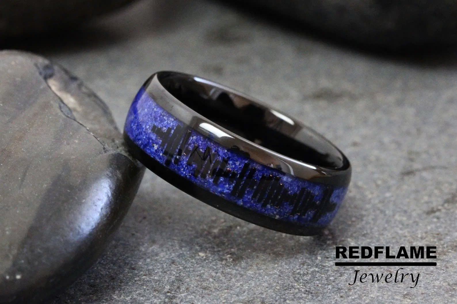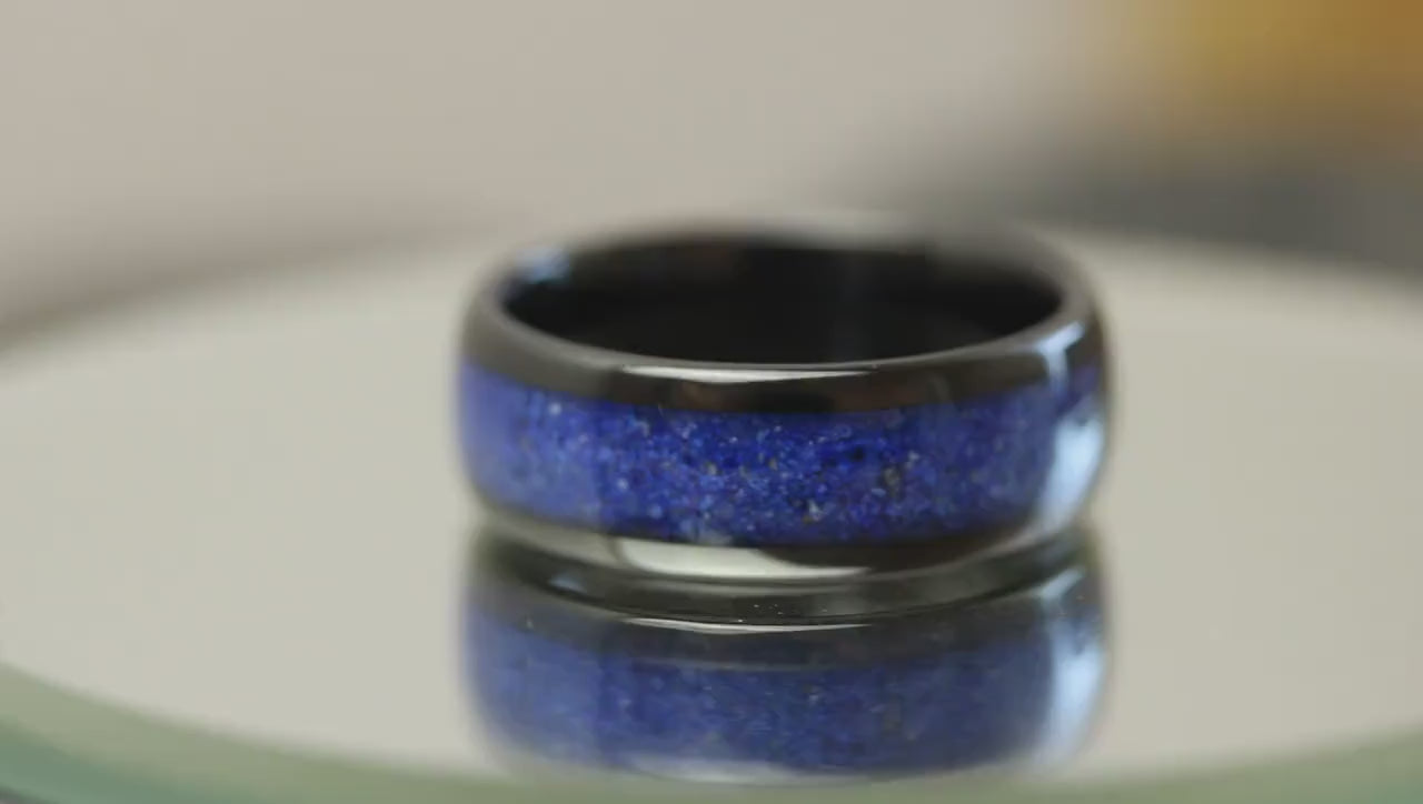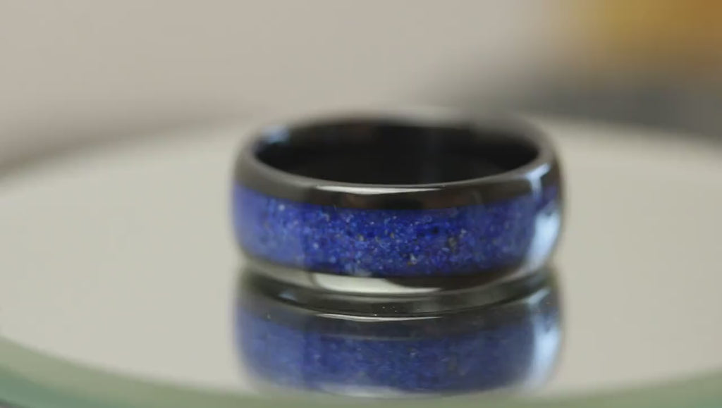 Lapis Lazuli Crushed Black Tungsten Carbide Rings - Custom Order – TungstenRingStudio