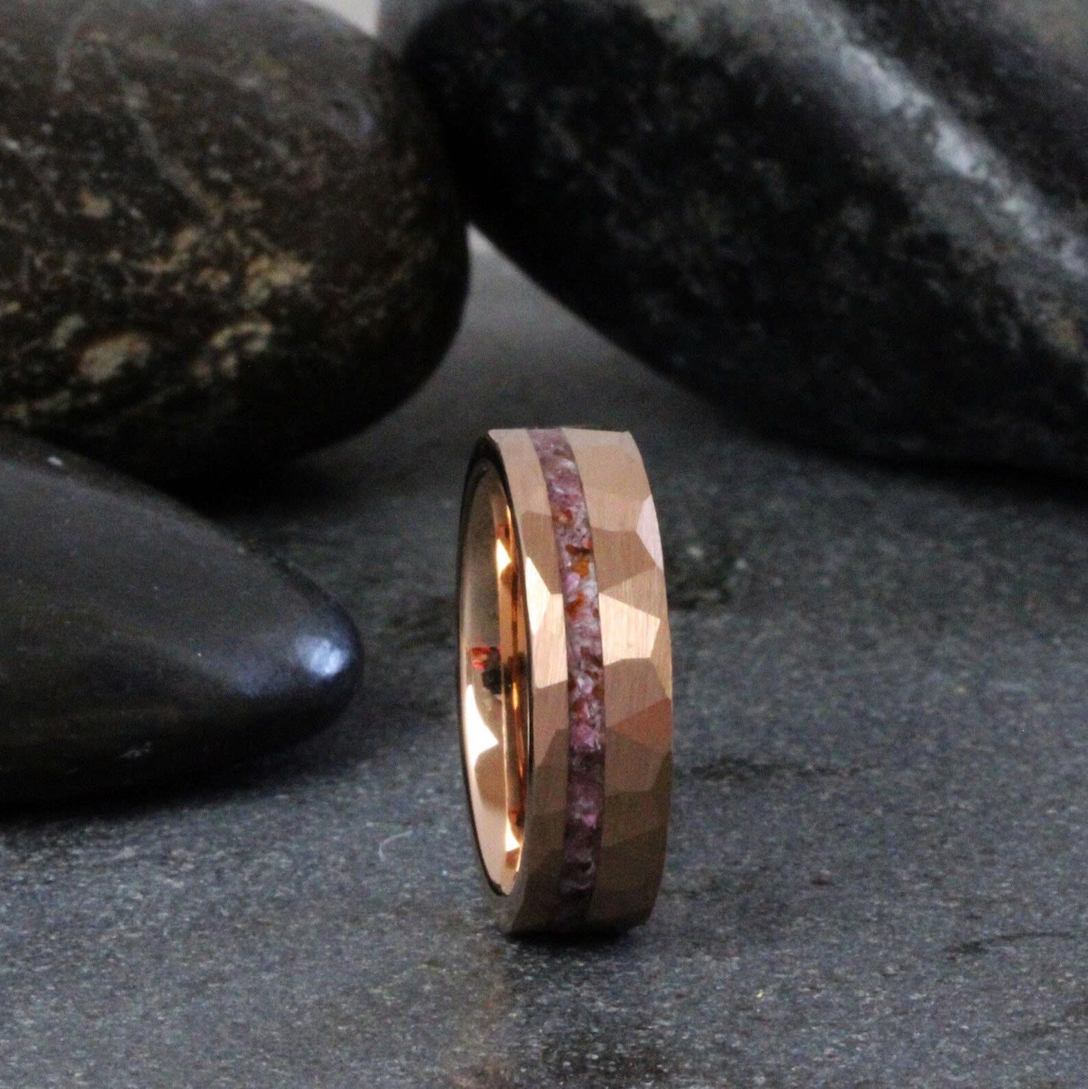 Light Red Pink Garnet Rose Gold Hammered Tungsten Carbide Rings - Cust – TungstenRingStudio